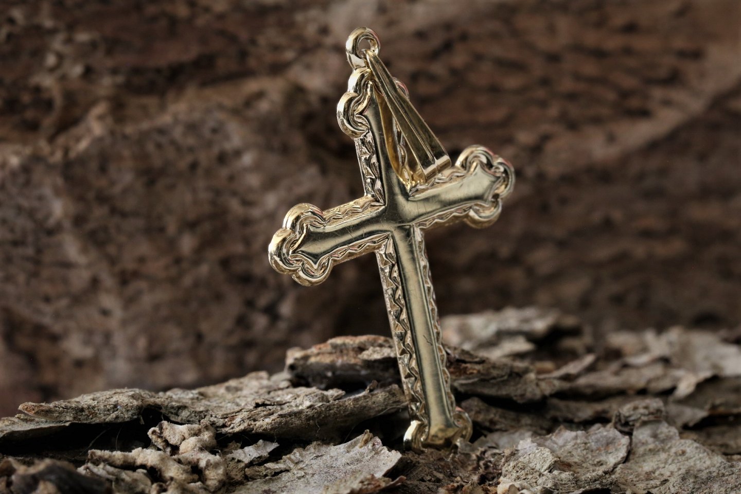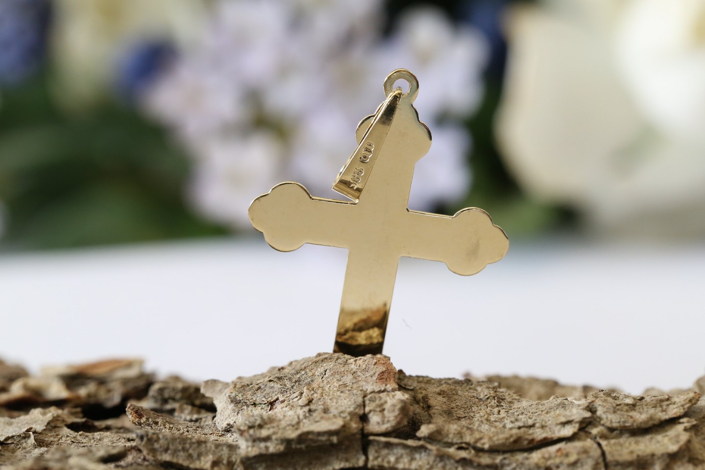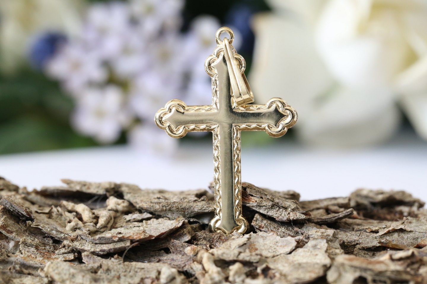 Beautiful gold cross in 14 carat 585 gold. Pendant with beautiful details.