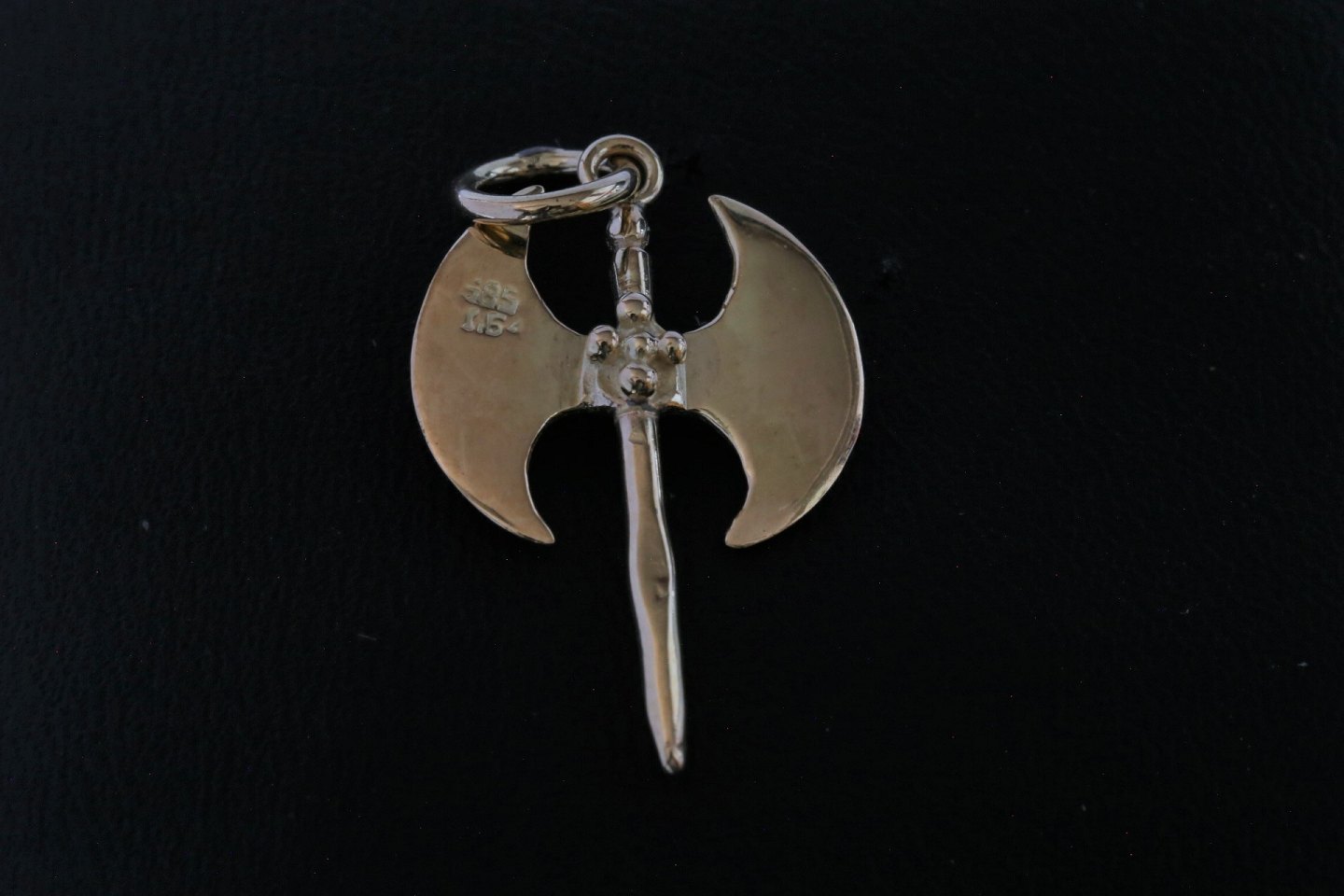 Beautiful and simple motif, shaped like a battle ax and forged in 14 carat gold. A nice and masculine pendant that will look good in a yellow chain around the neck. The jewelry is simple, but at the same time beautiful and minimalistic.