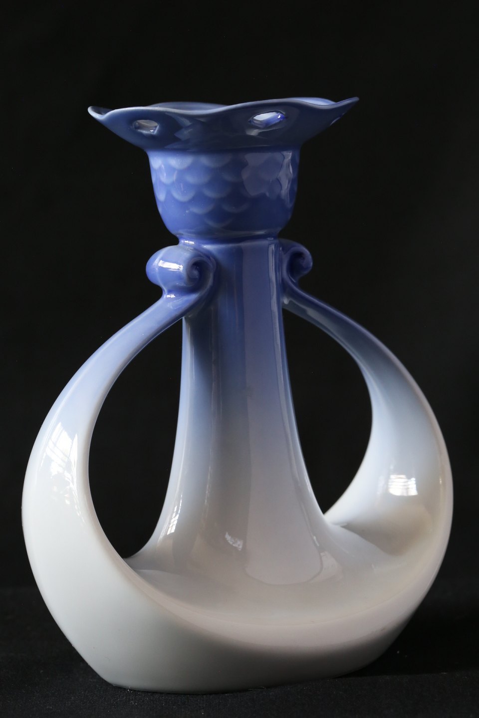 Bing & Grøndahl Blue tone, Tall Candlesticks with Lace trim Dec. No. 503 or 72 Height 13 cm. Factory first Beautiful and well maintained