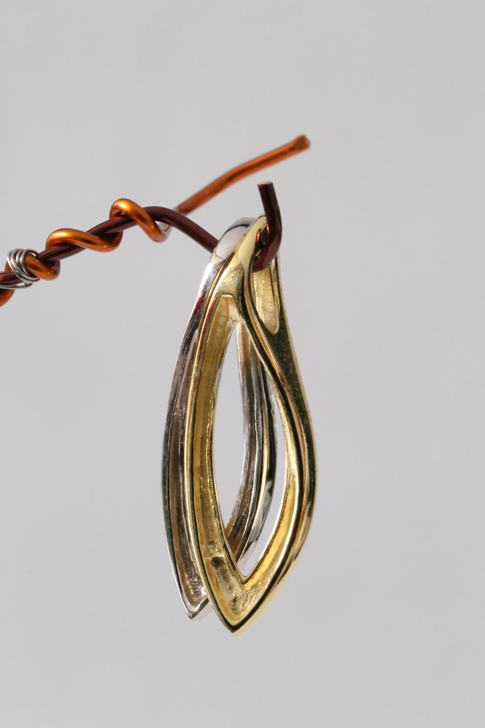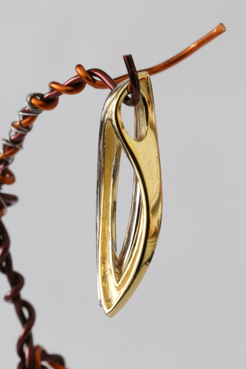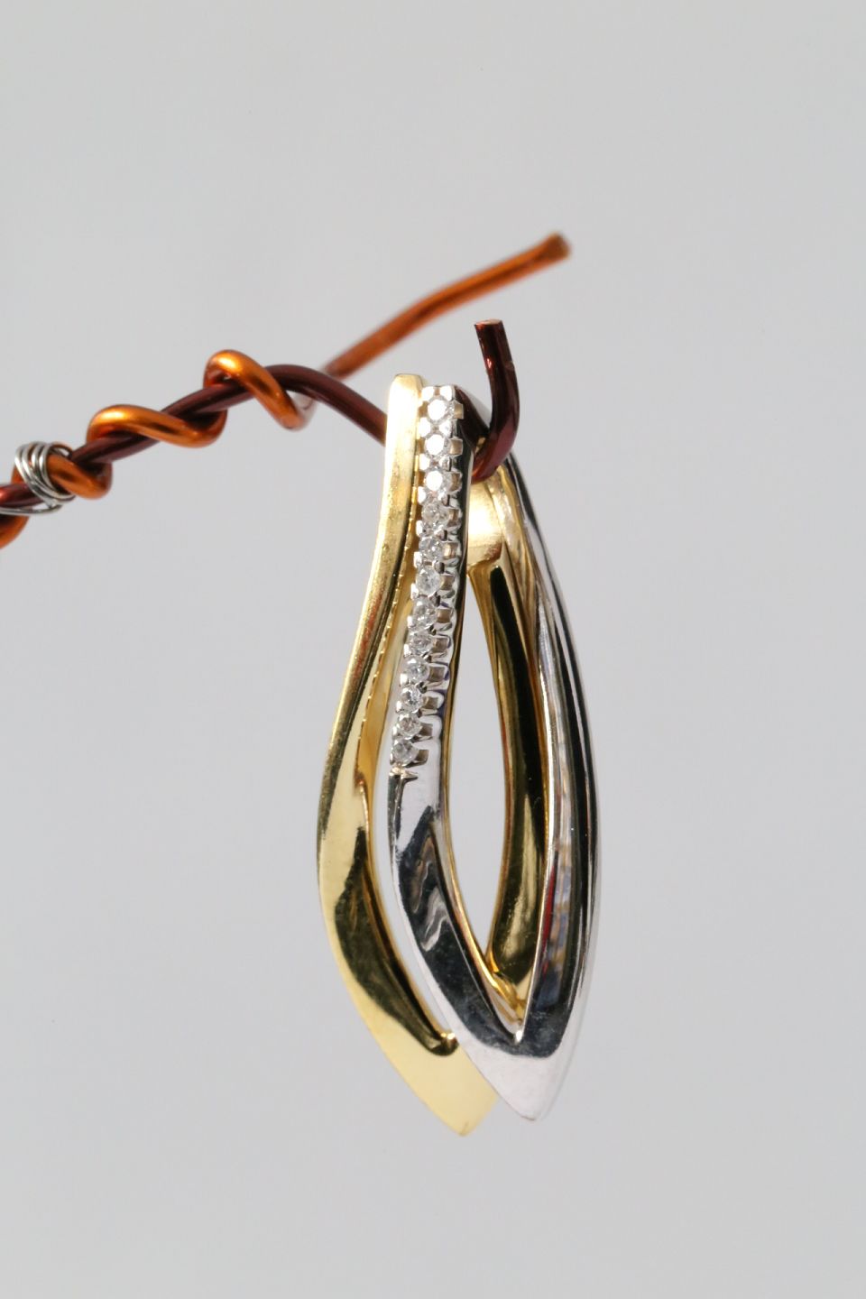 This beautiful and large pendant is made with attention to the smallest details. The pendant is forged from white and red gold, in a beautiful timeless curved shape. The inlaid brilliants give the pendant a nice shine that radiates good style and class. As the pendant is one of the larger ones, it can be advantageously combined with a thicker gold chain.