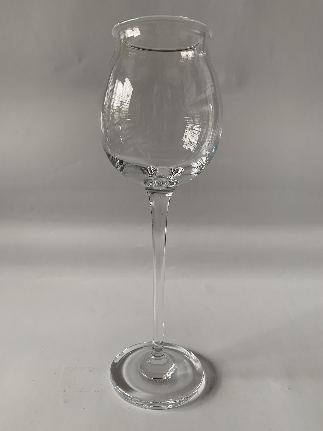 Ballet White wine glass designed by Michael Bang in 1980 for Holmegaard. There is glass both in clear and in the bluish (leaded) glass mass. H: 20.5 cm Neat and well maintained