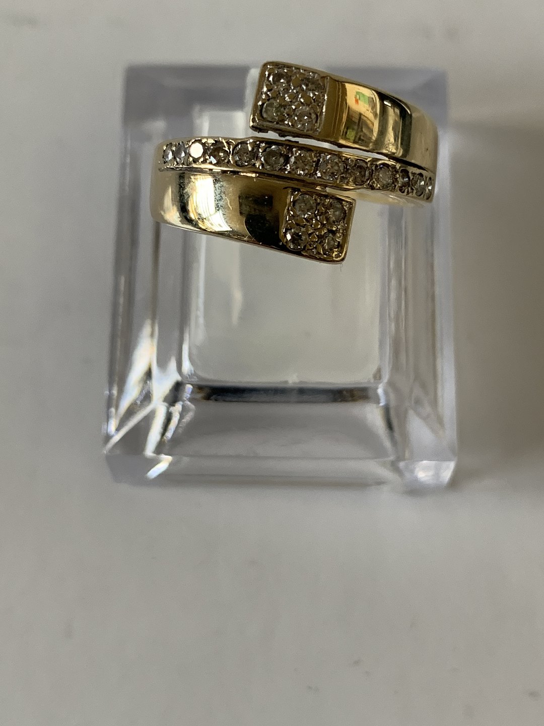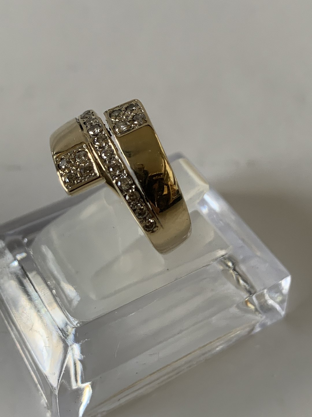 Flot og elegant damering i guld, og med flotte bløde former. Der giver ringen en flot levende look. De indlagte brillanter, giver ringen et enormt liv. Ringen kan bruges til både hverdag og fest, hvor den kan anvendes alene eller i kombination med andre ringe.