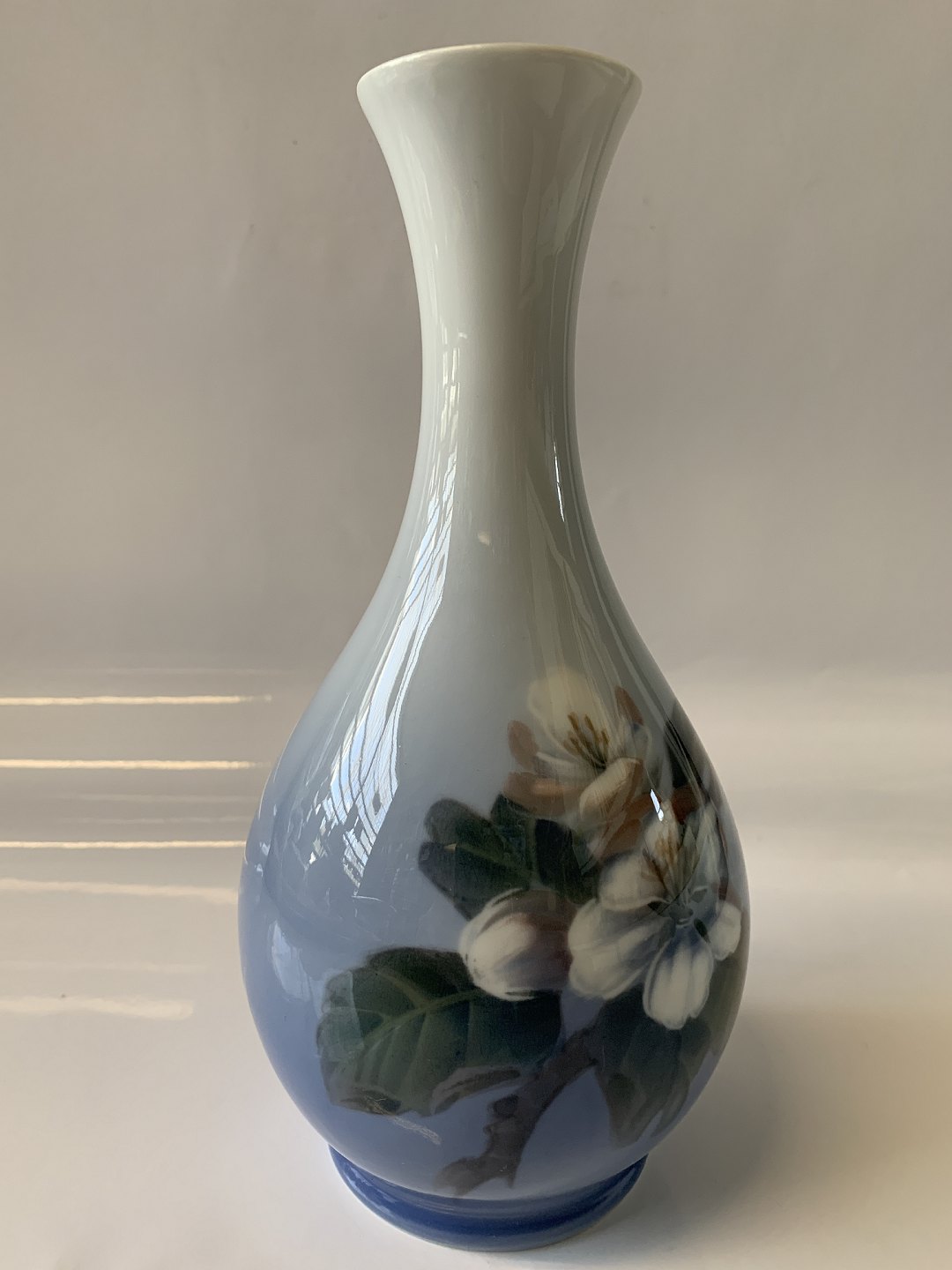 Royal Copenhagen Vase with tall slender neck, with Apple blossom