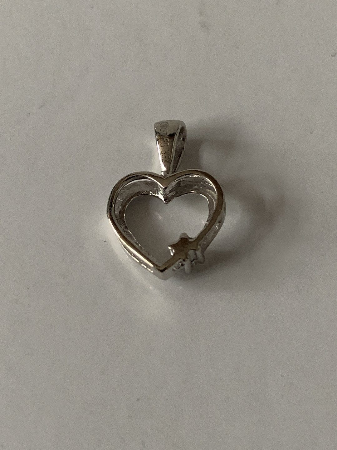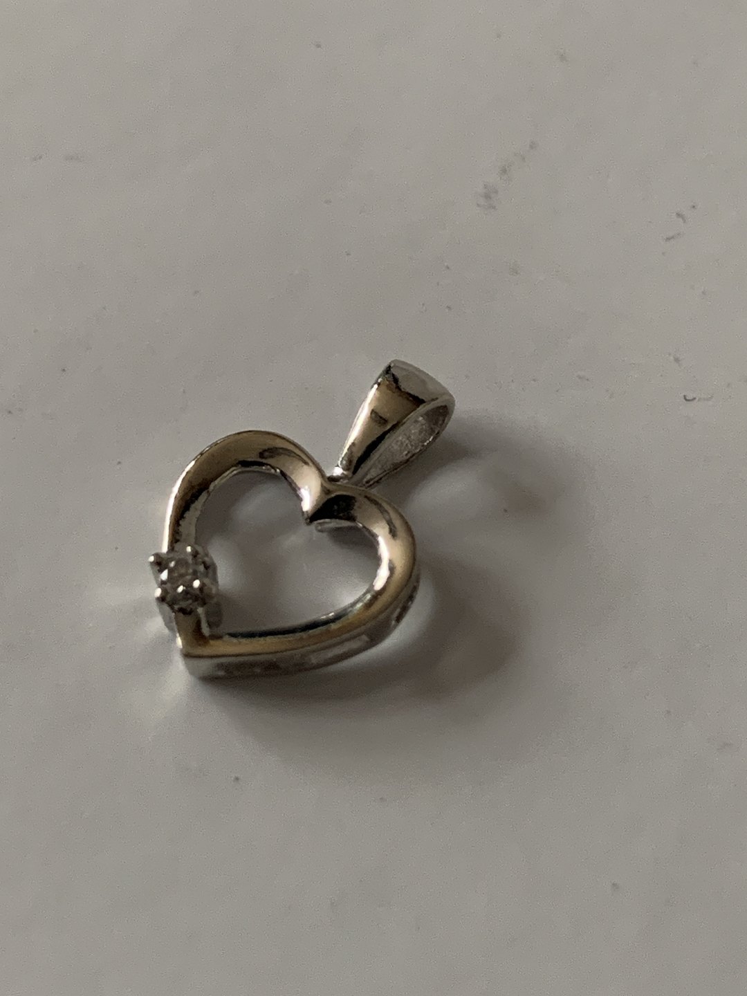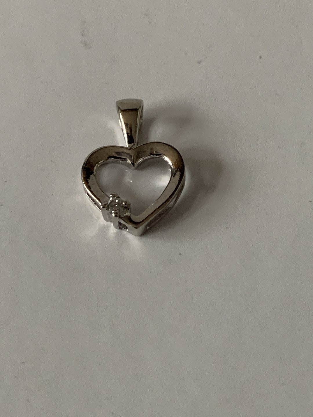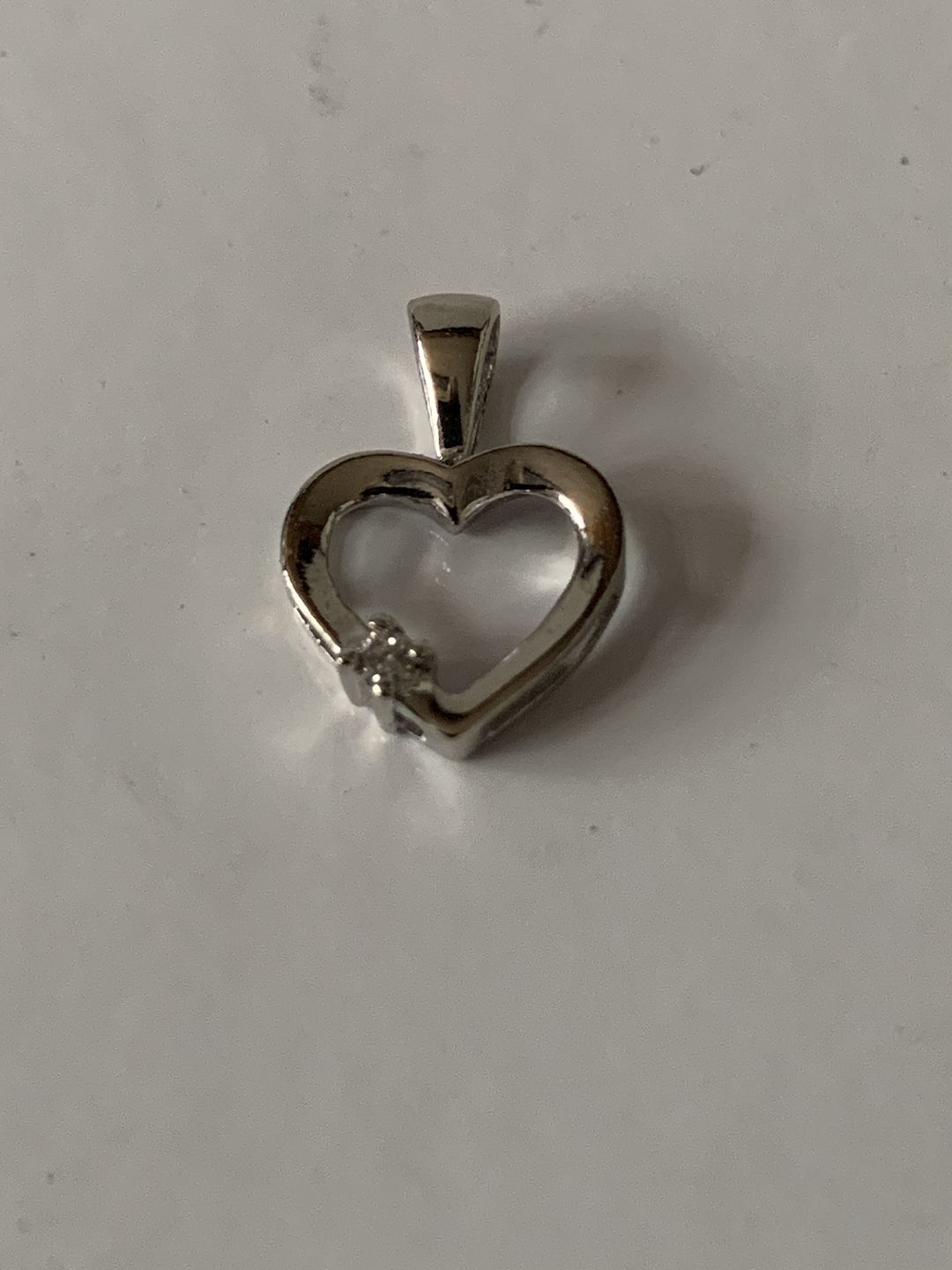 Beautiful small pendant in 8 carat white gold that will be suitable as a pendant for a thin necklace. The beautiful heart shape is interrupted by a beautiful small brilliant that gives the pendant "a twinkle in the eye". This pendant can either be used alone in a thin chain, or perhaps in combination with other pendants.