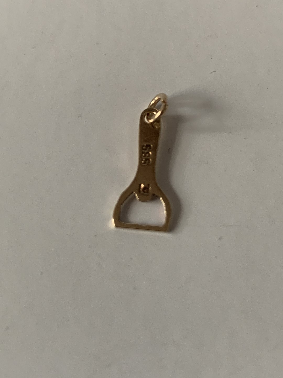 Vedhænget er formet som en øloplukker.