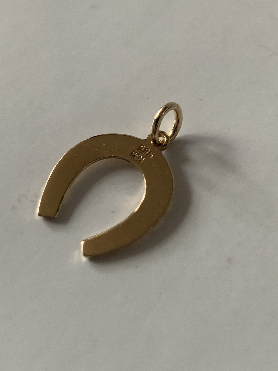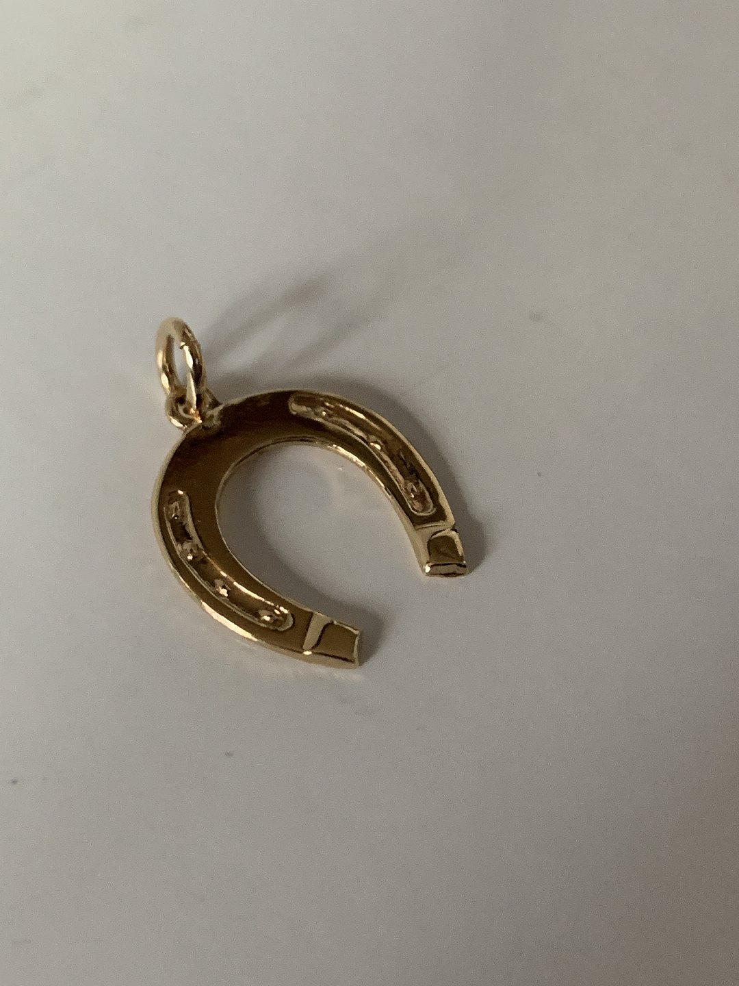 Smukt lille vedhæng, formet som en hestesko. Vedhænget kan bruges som charm i et guldarmbånd, eller som vedhæng til en halskæde. Et smukt lille vedhæng, der samtidig (måske) kan give held og lykke, eller symbolisere kærligheden til heste.