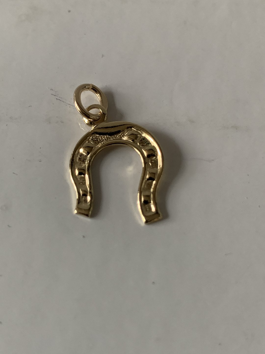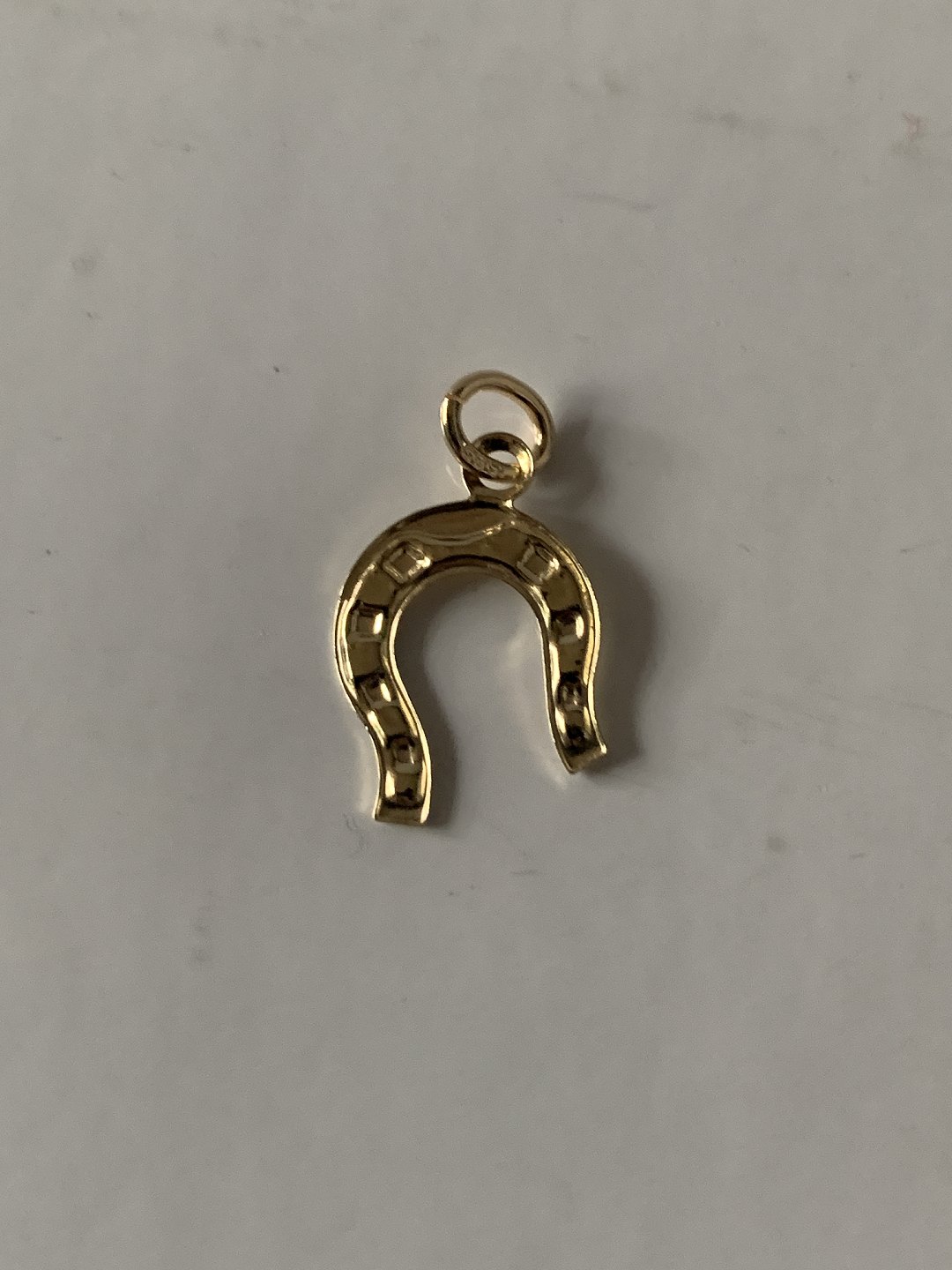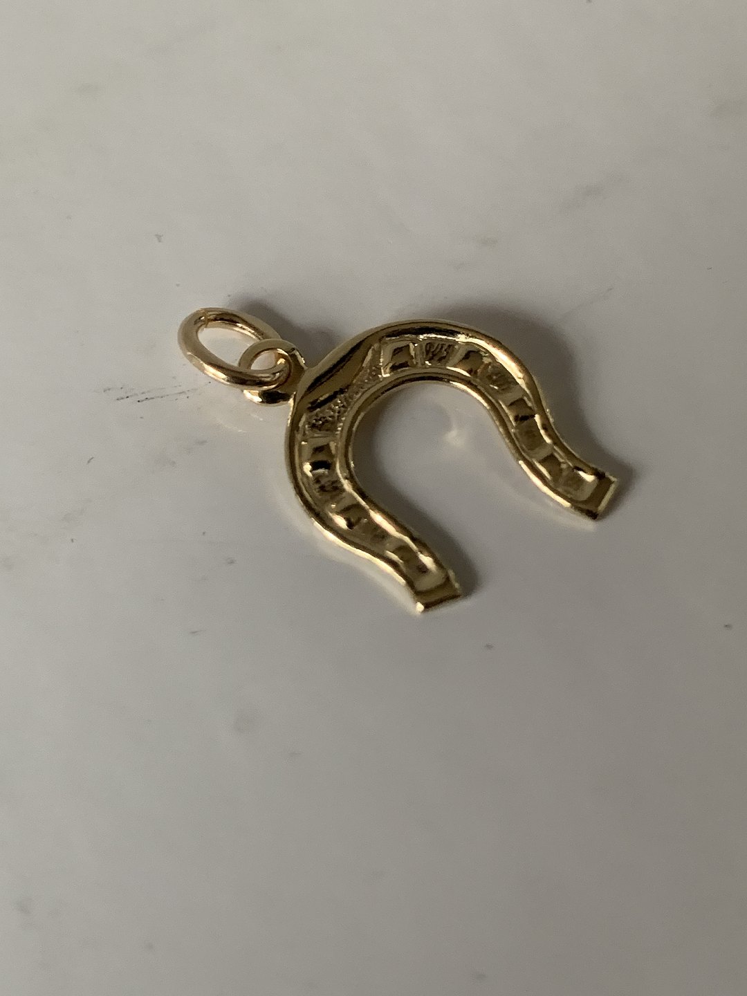 Beautiful little pendant, shaped like a horseshoe. The pendant can be used as a charm in a gold bracelet, or as a pendant for a necklace. A beautiful little pendant that can also (perhaps) bring good luck or symbolize the love of horses.