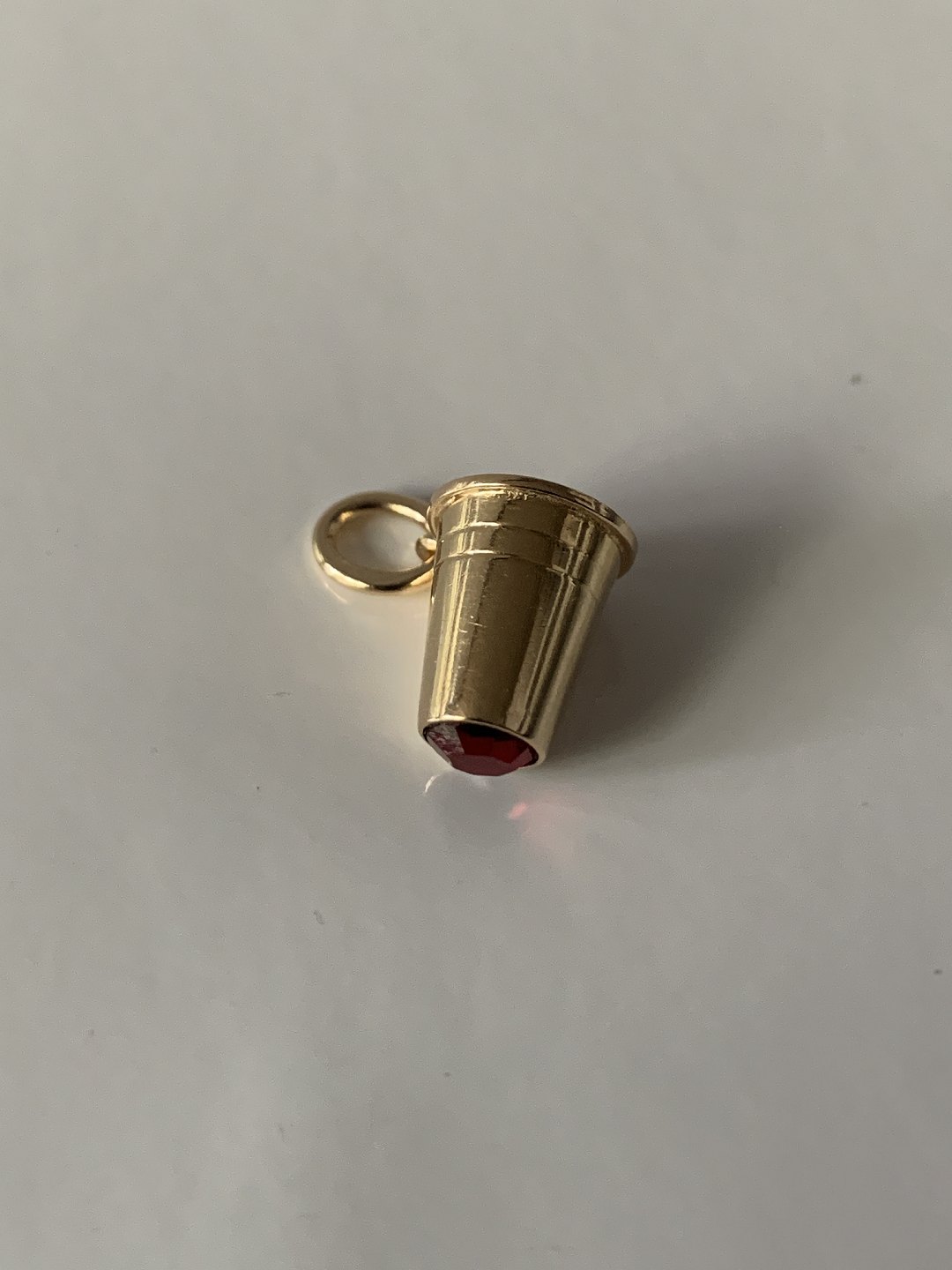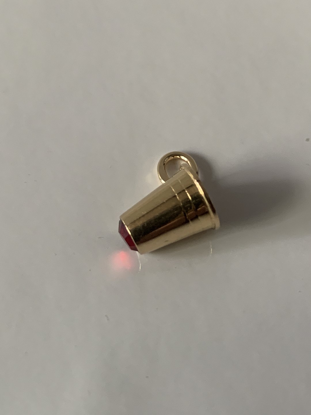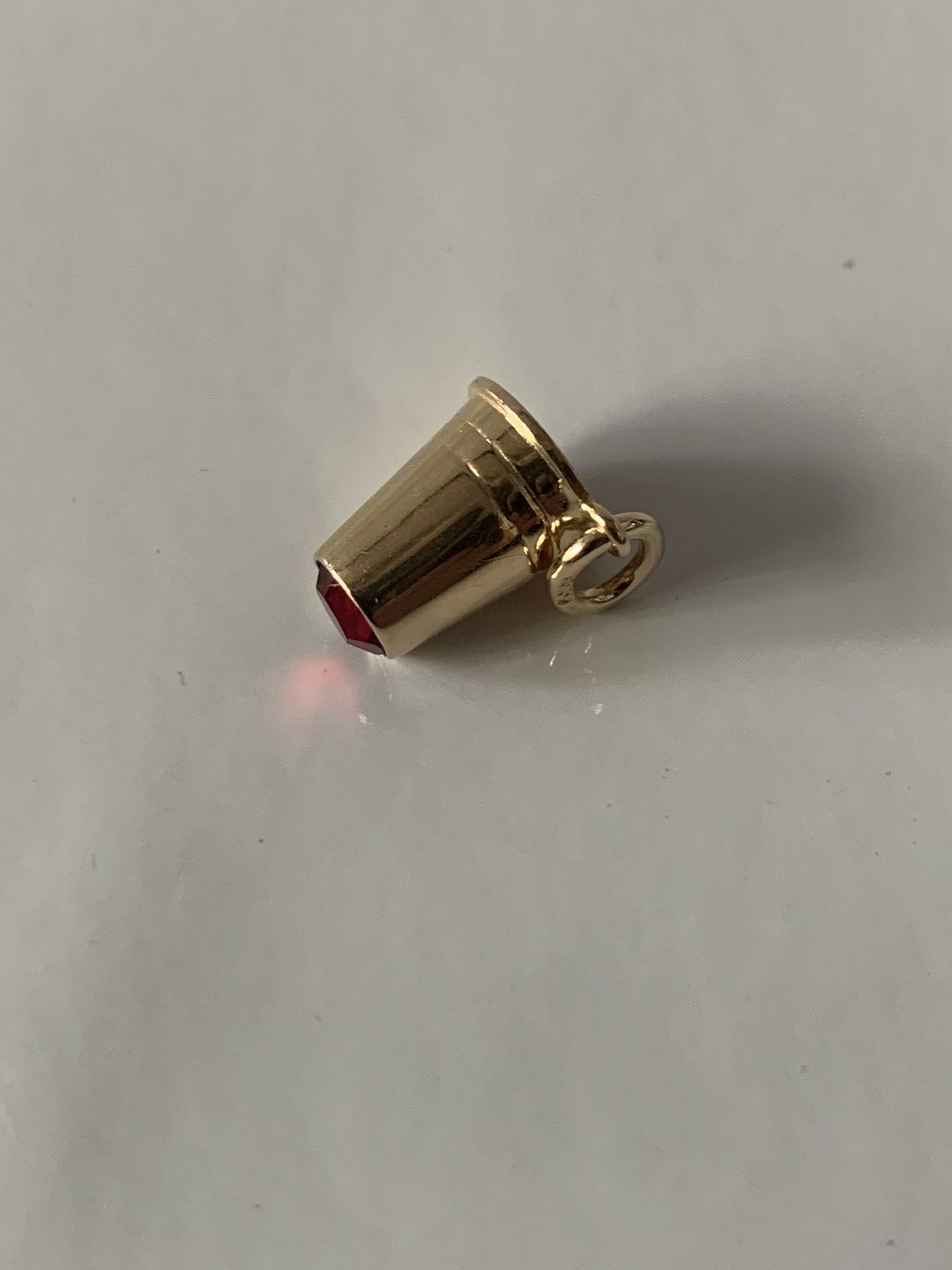 Vedhæng/charm til armbånd i 14 karat guld, med rød sten.