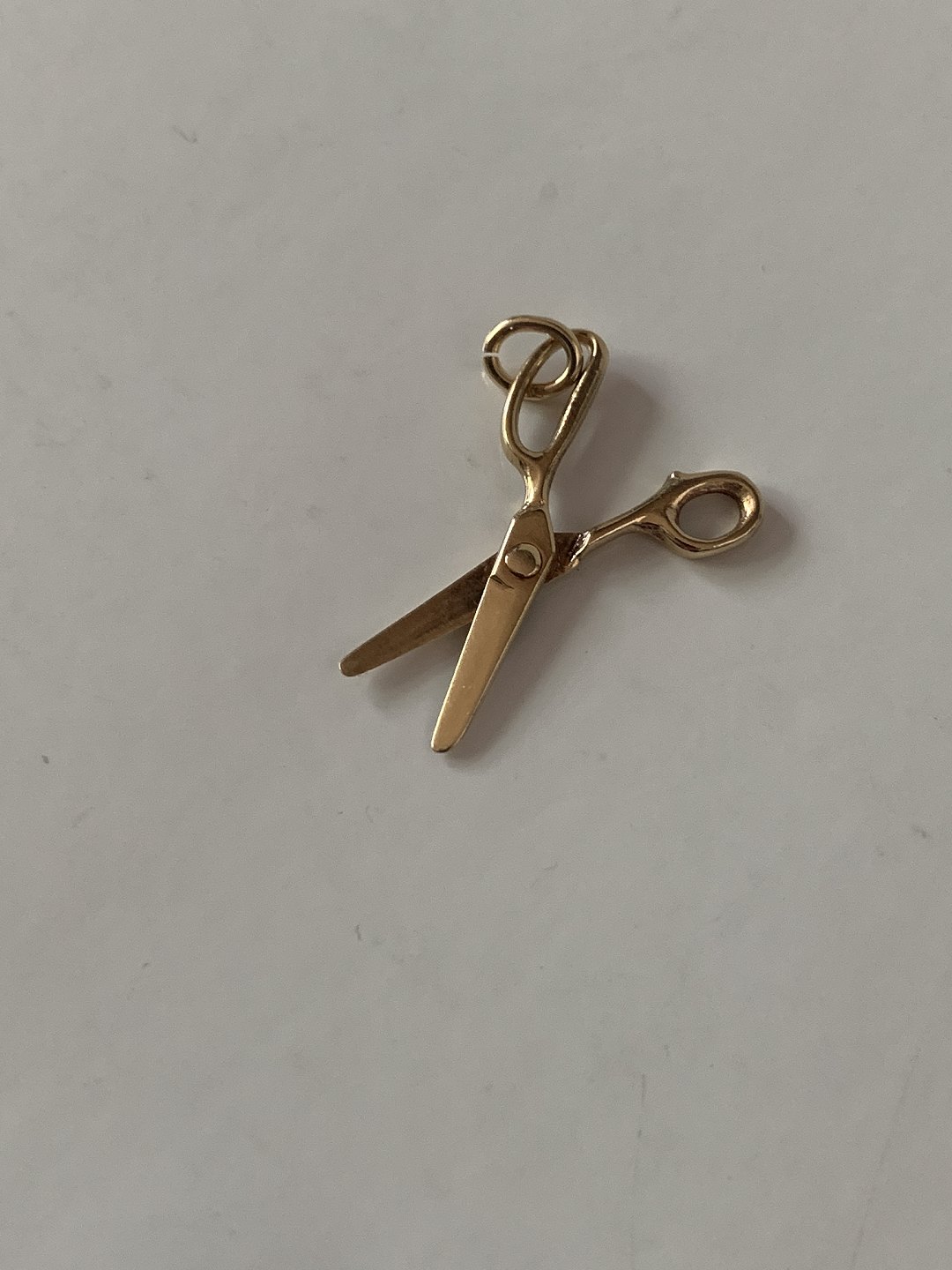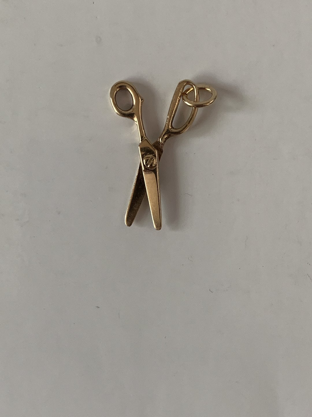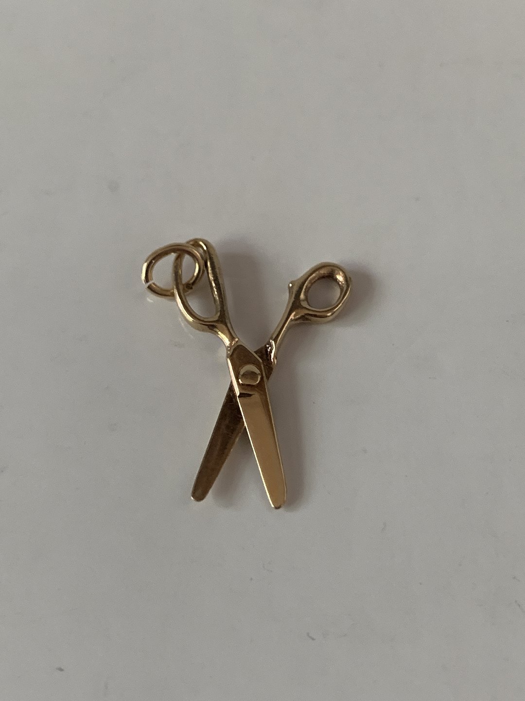 Beautiful and discreet pendant, designed as a pair of scissors in 14 carat gold. Suitable for a necklace or as a pendant in a bracelet. Beautiful minimalistic and classic piece of jewelry that has been used for many years.