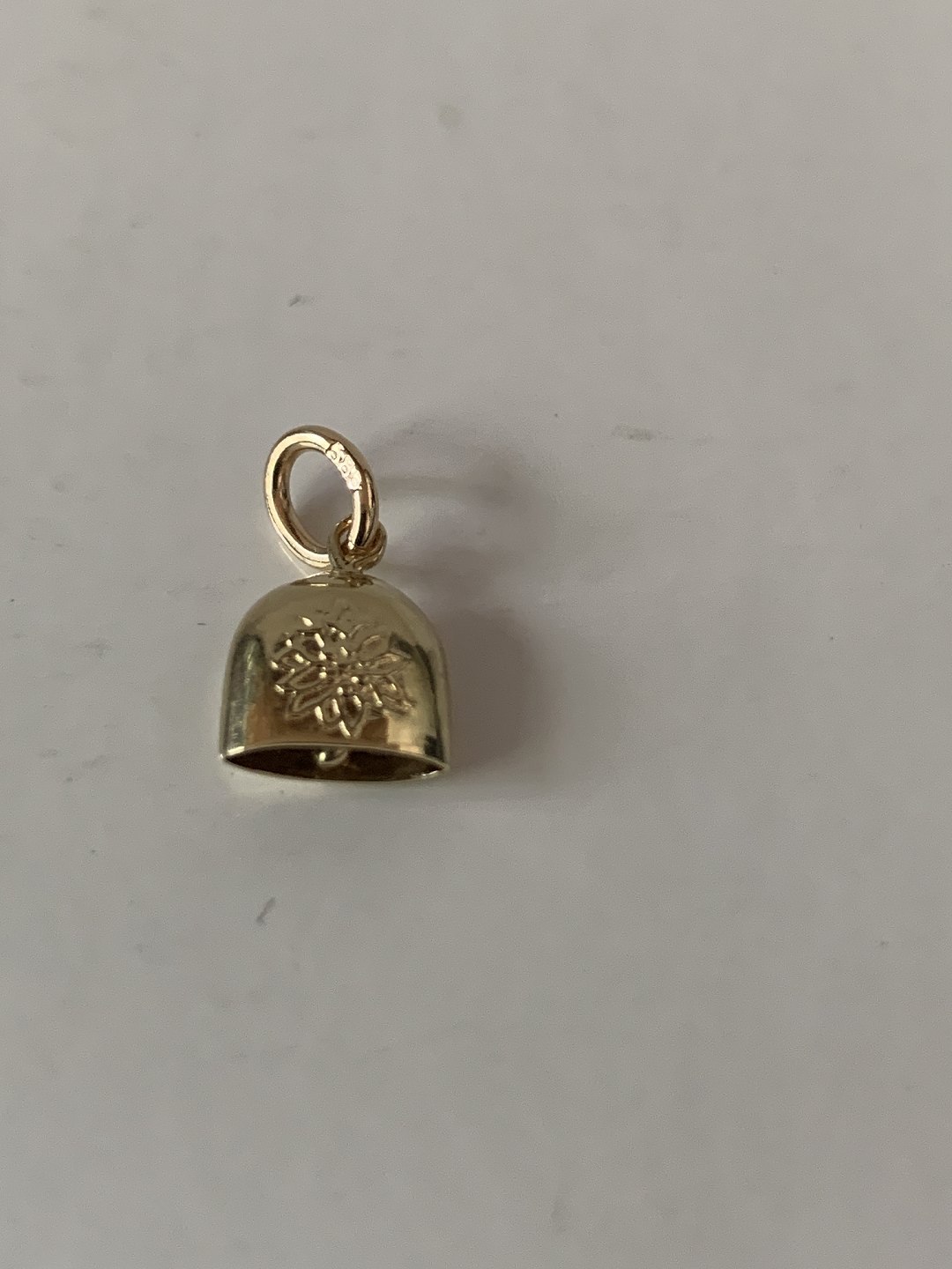 Beautiful and discreet pendant, designed as a bell in 14 carat gold. Suitable for a necklace or as a pendant in a bracelet. Beautiful minimalistic and classic piece of jewelry that has been used for many years.