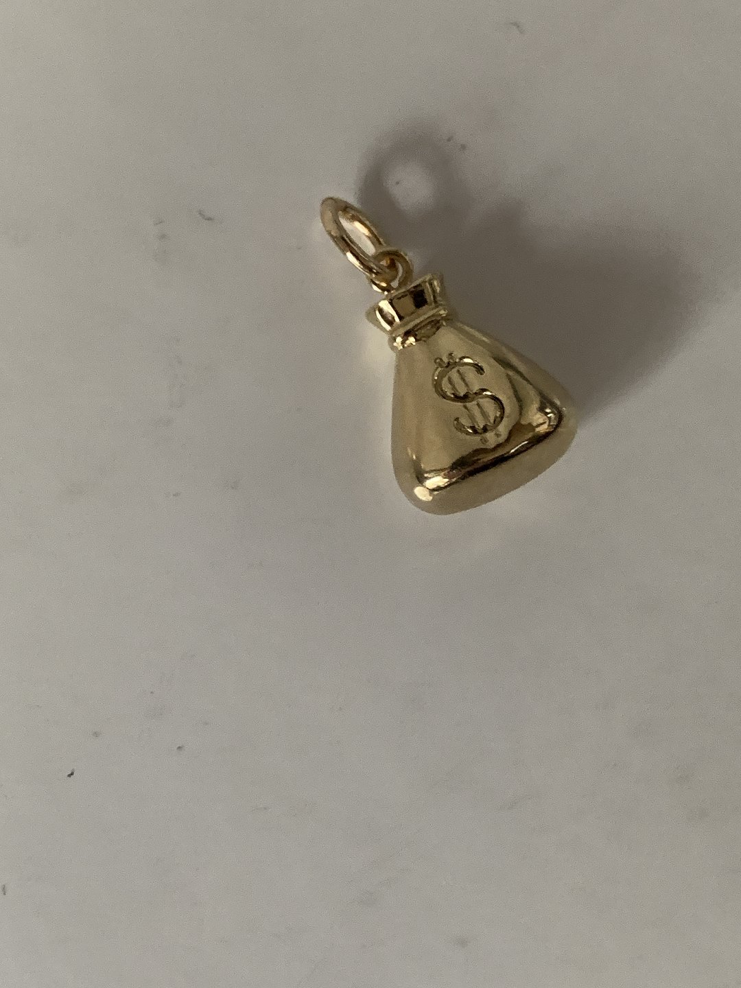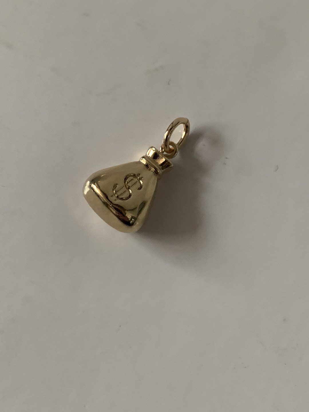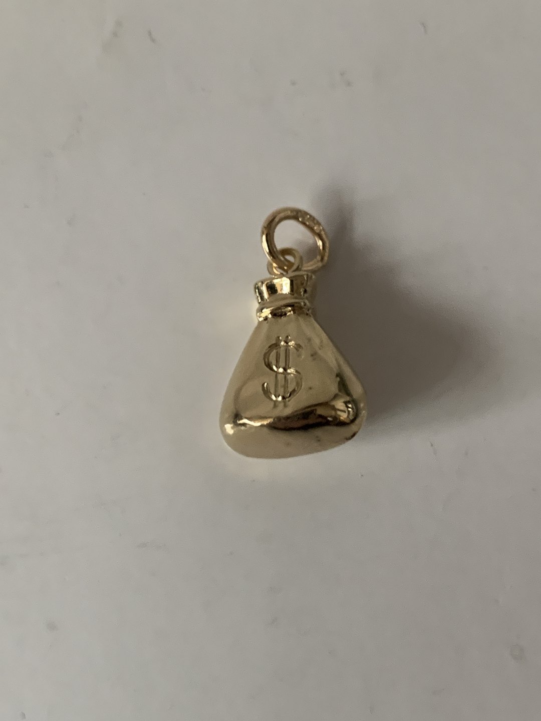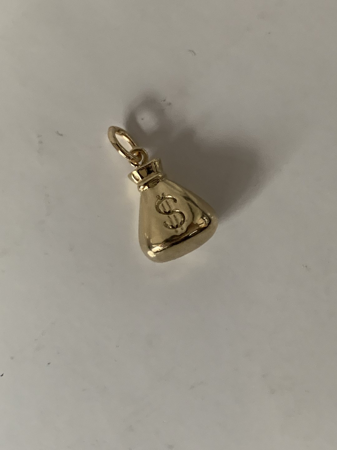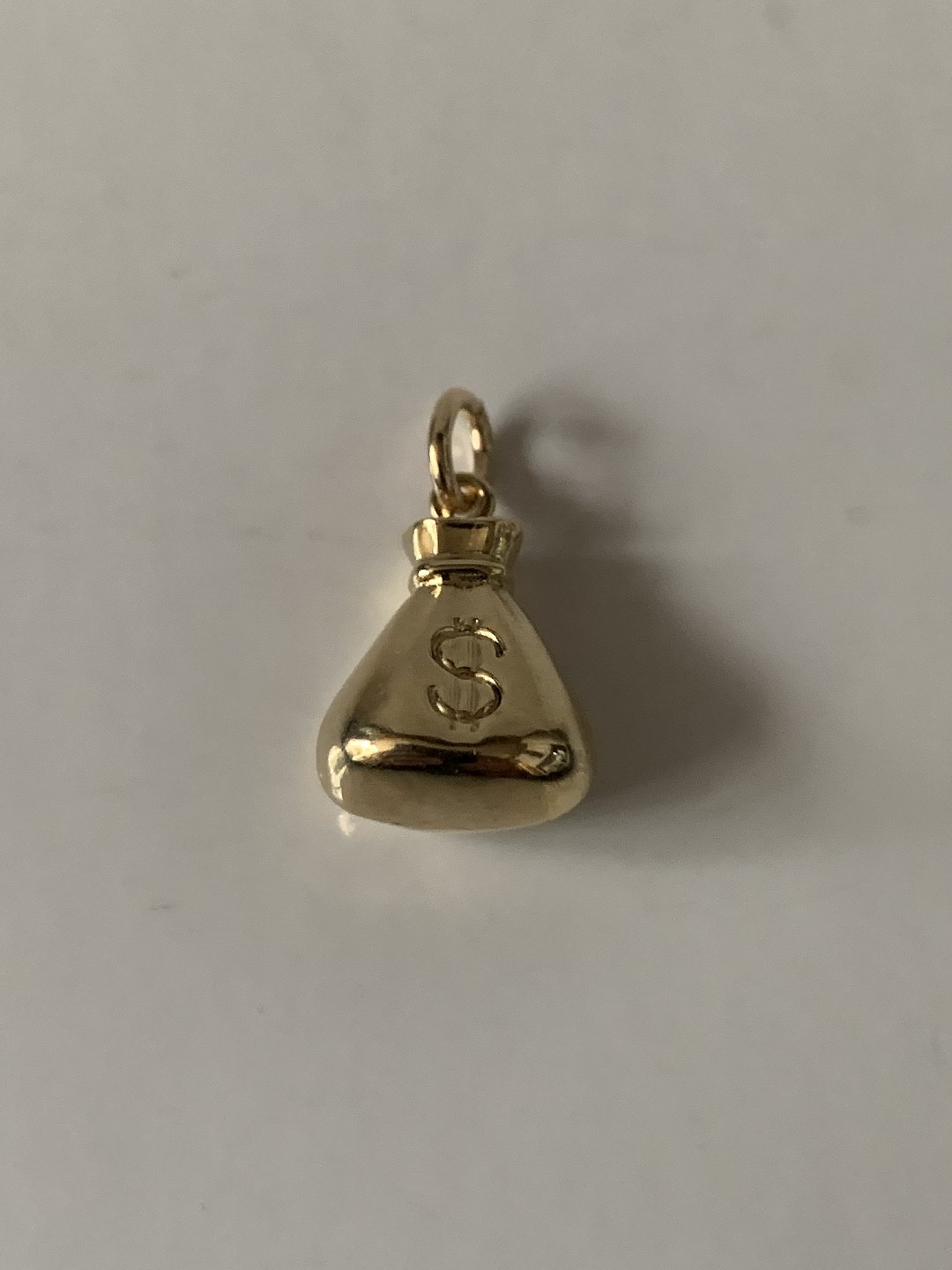 Flot og diskret vedhæng, udformet som Pengepose i 14 karat guld. Velegnet til halskæde, eller som vedhæng i armbånd. Smukt minimalistisk og klassisk smykke, der har været brugt i mange år.