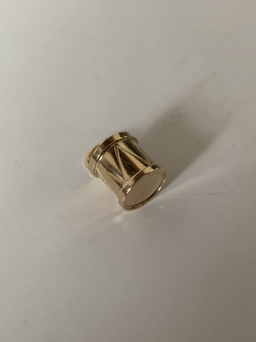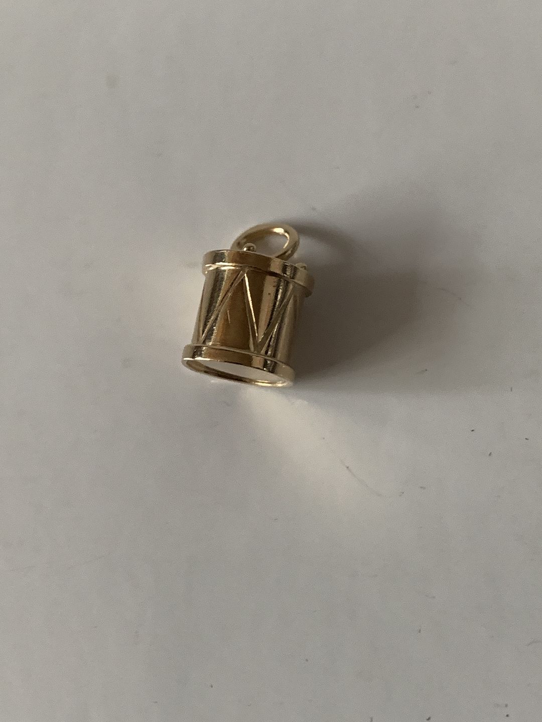 Nice and discreet pendant, shaped like a drum in 14 carat gold. Suitable for a necklace or as a pendant in a bracelet. Beautiful minimalistic and classic piece of jewelry that has been used for many years.