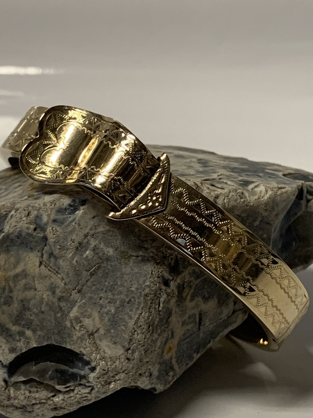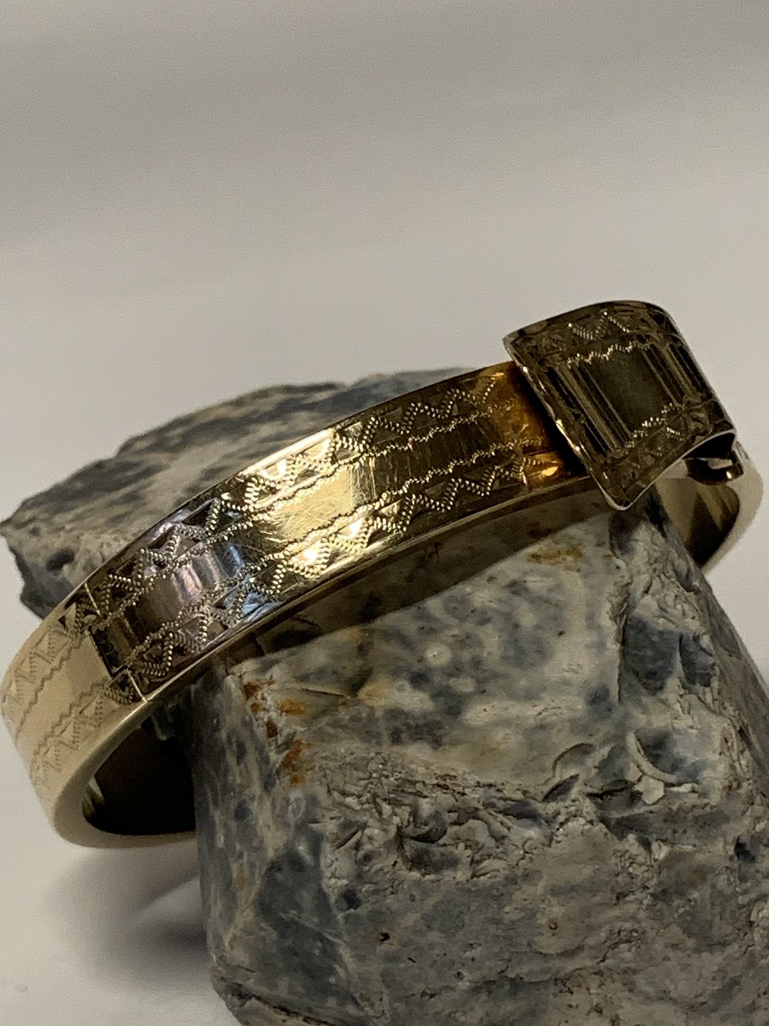 A really beautiful vintage bangle in 14 carat gold with the finest cesels. The bangle is opened/closed by the push-in clasp on the side.