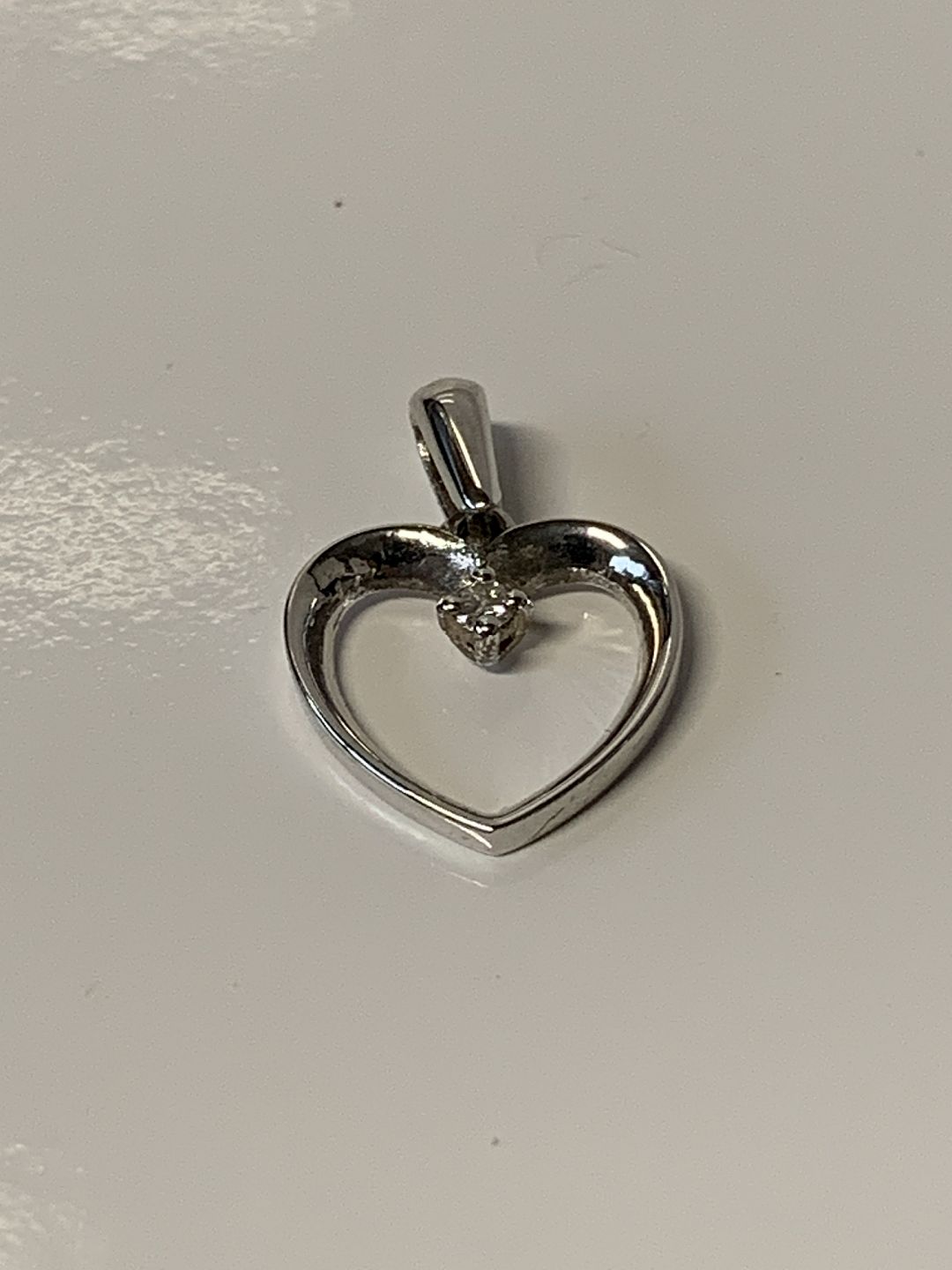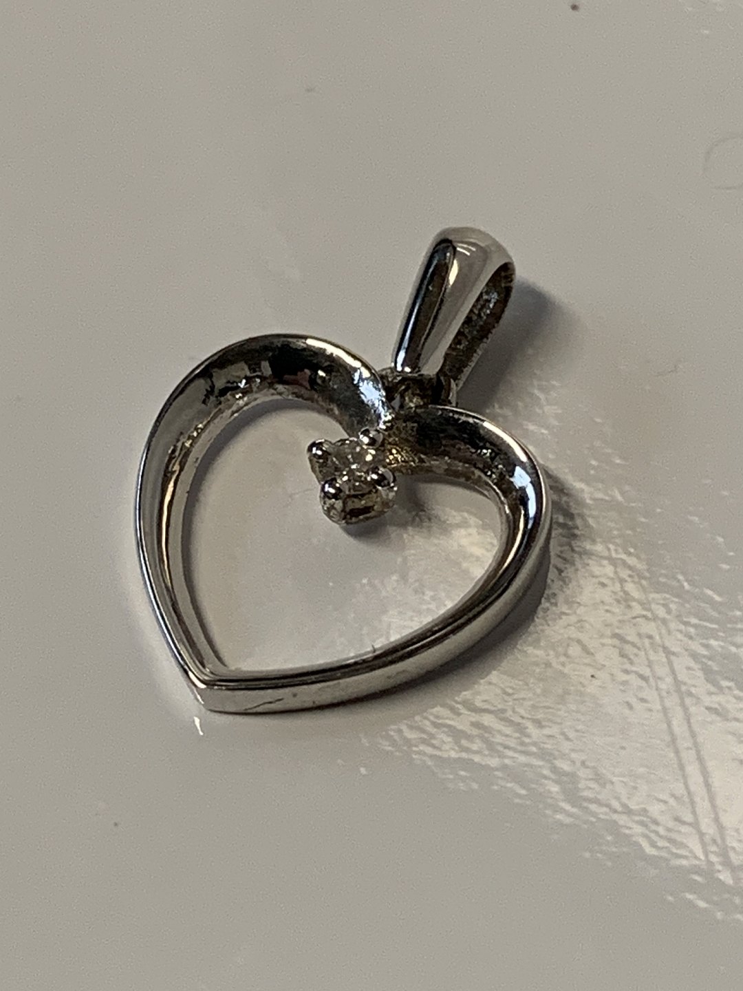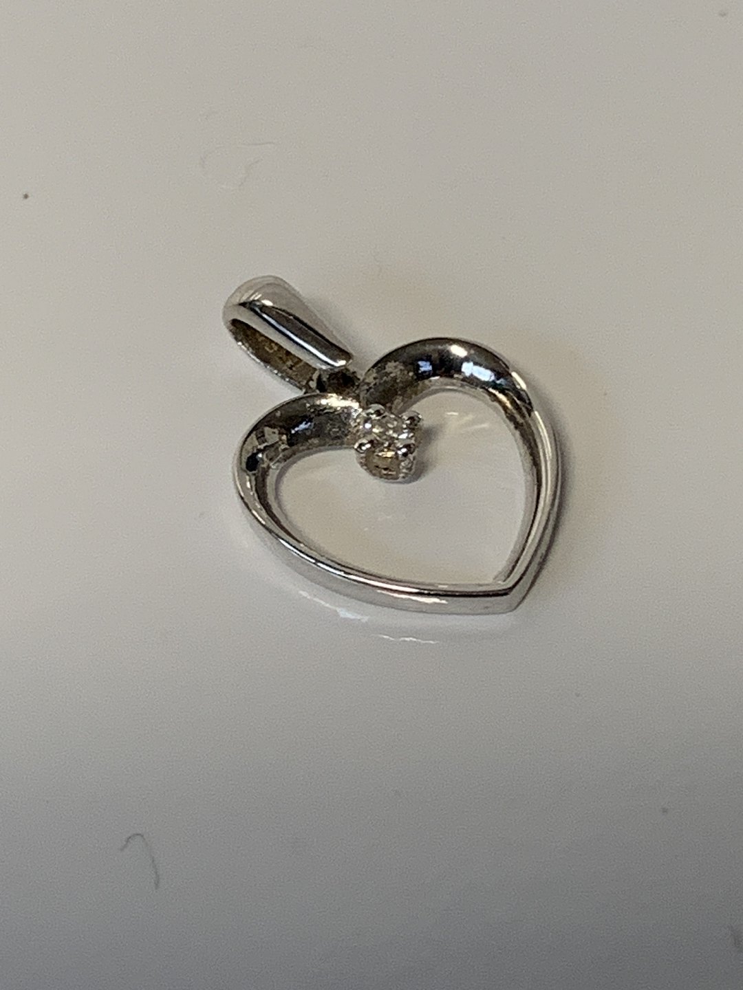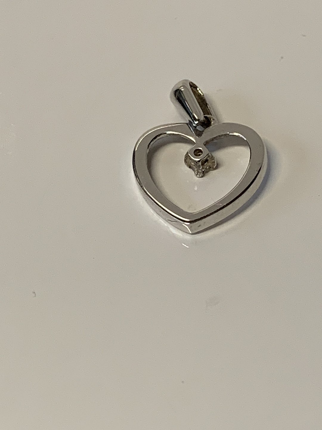 Flot og diskret vedhæng, udformet som Hjerte med en diamant i 14 karat hvidguld. Velegnet til halskæde, eller som vedhæng i armbånd. Smukt minimalistisk og klassisk smykke, der har været brugt i mange år.
