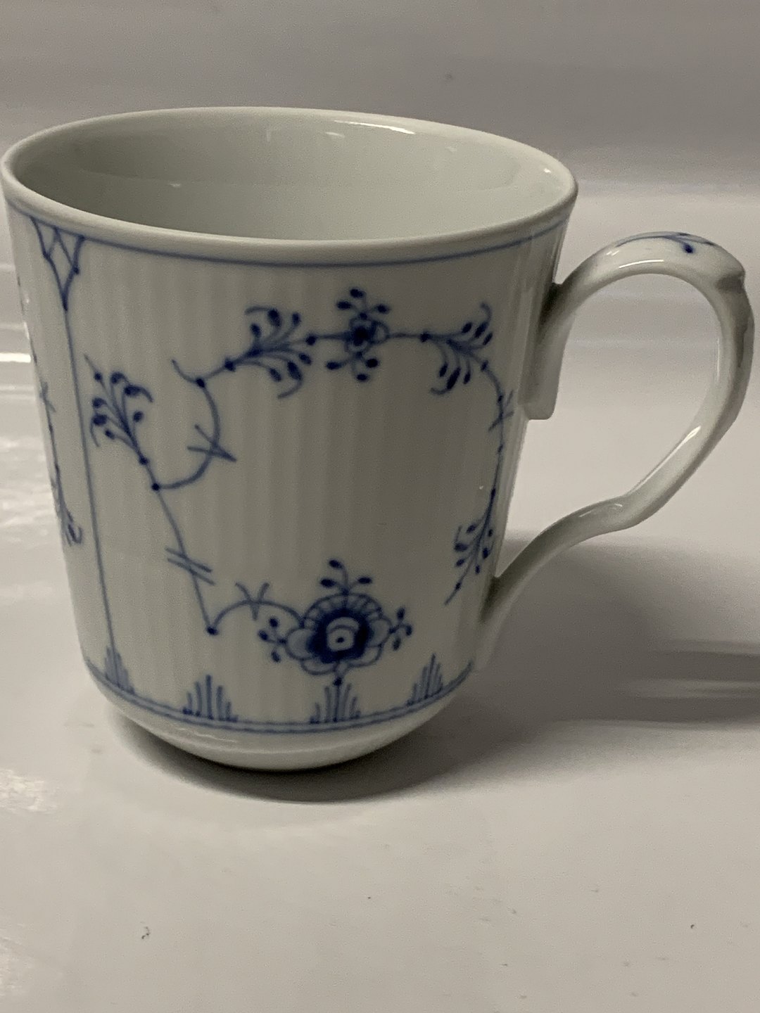 Royal Copenhagen Musselmalet Riflet, KRUS Diameter 9,1 cm. Højde 10 cm. 1. sortering. Dekorationsnummer: 103 Perfekt stand Se i øvrigt vores store udvalg af kaffe-spisestel her: https://www.antikhuset.net/katindex.asp?kukat=553
