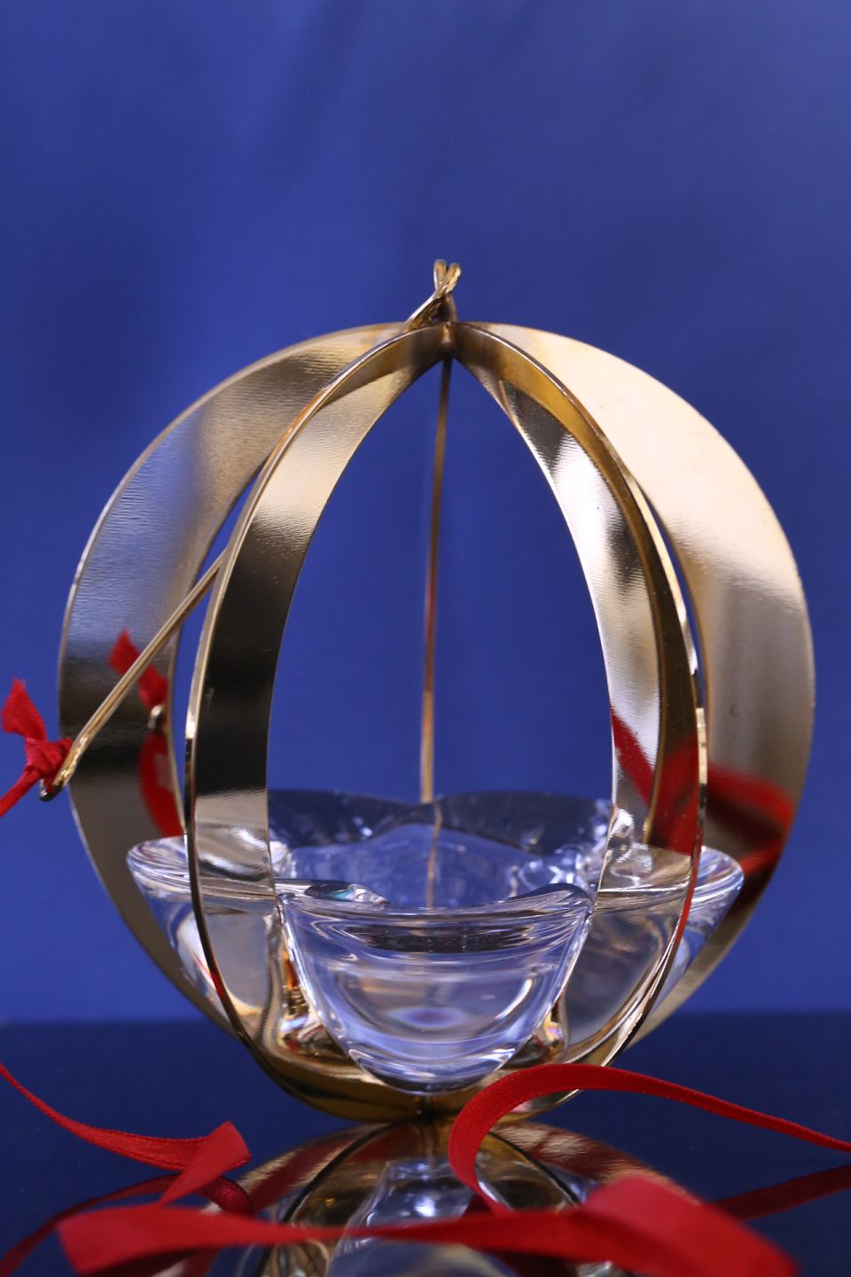 Flot og elegant juleuro med fyrfadsholder fra danske Holmegaard. Det klassiske Golden Christmas tema, er altid smukt ved juletid og bringer varme ind i hjemmet. Denne juleuro er især smuk, fordi lyset fra fyrfadslyset reflekteres i de gyldne buer, og giver et smukt og varmt skær.