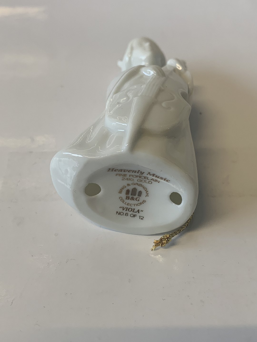 Bing & Grøndahl. Heavenly Music. Viola No. 6 af 12. Hvid porcelæns engel med guld staffering og guldvinger (24 karat). Serien hedder " Engel med Instrumenter" og består af 12 stk.