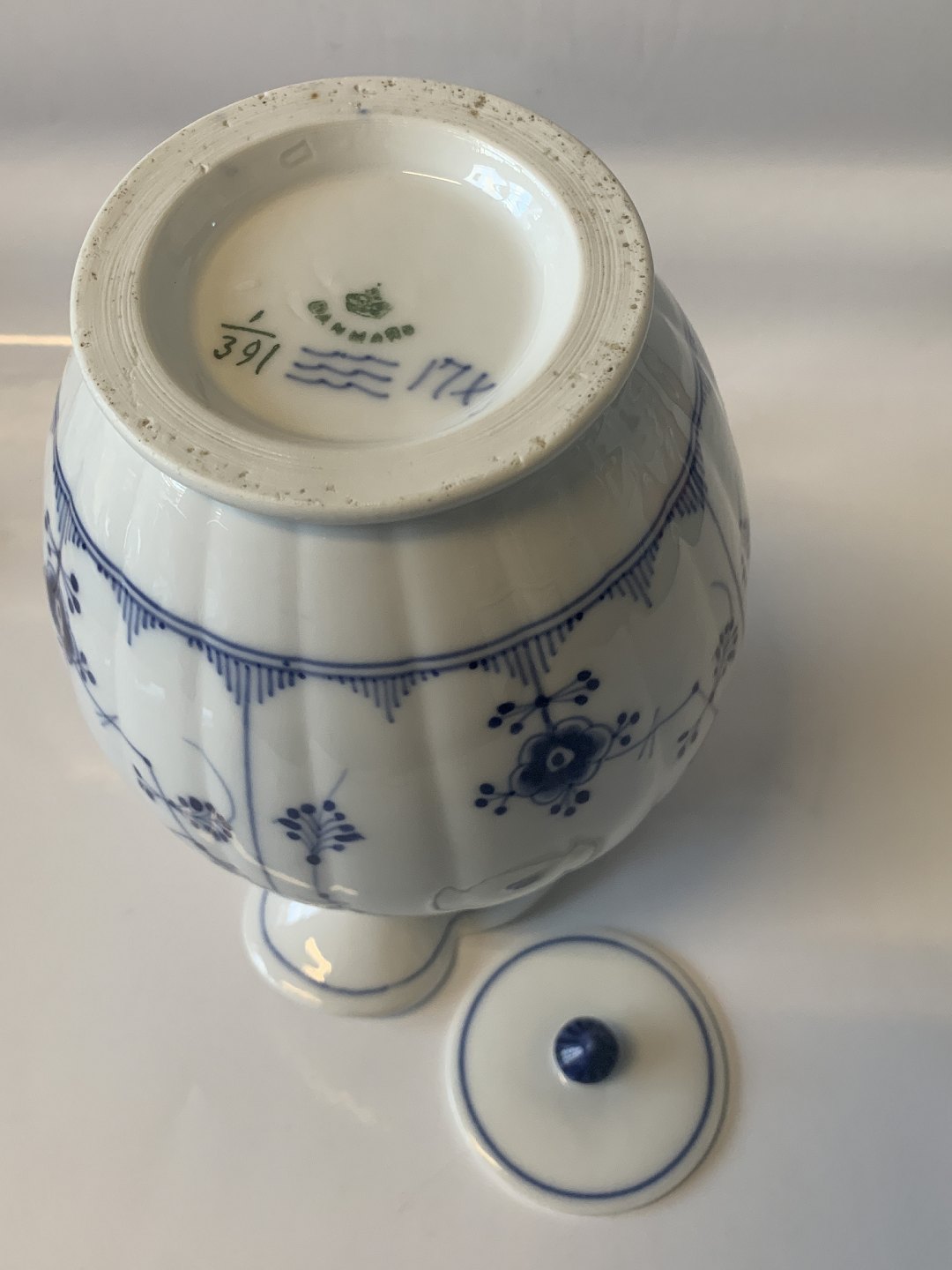 Royal Copenhagen musselmalet riflet Punchekande 1 pot.