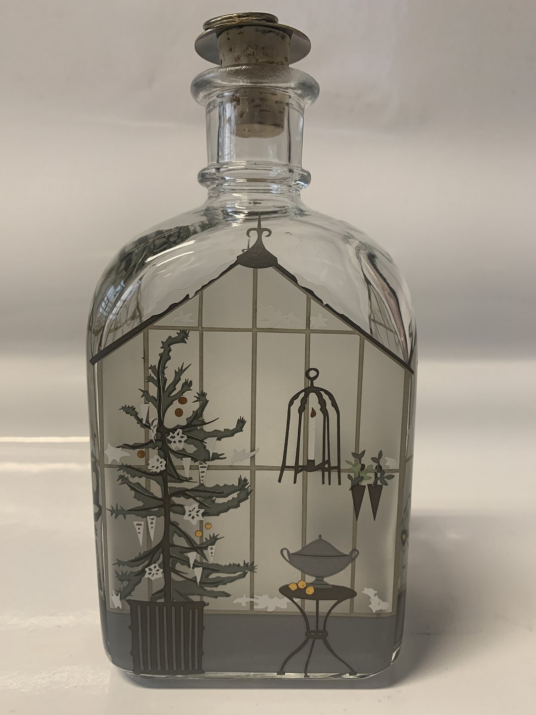 Holmegaard dram bottle Christmas 2008. Year: 2008. Height 18.5 cm. Nice and well-maintained condition.