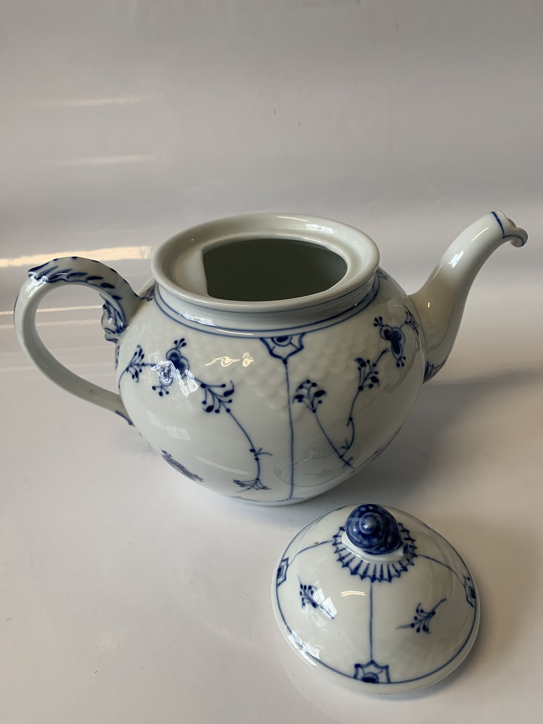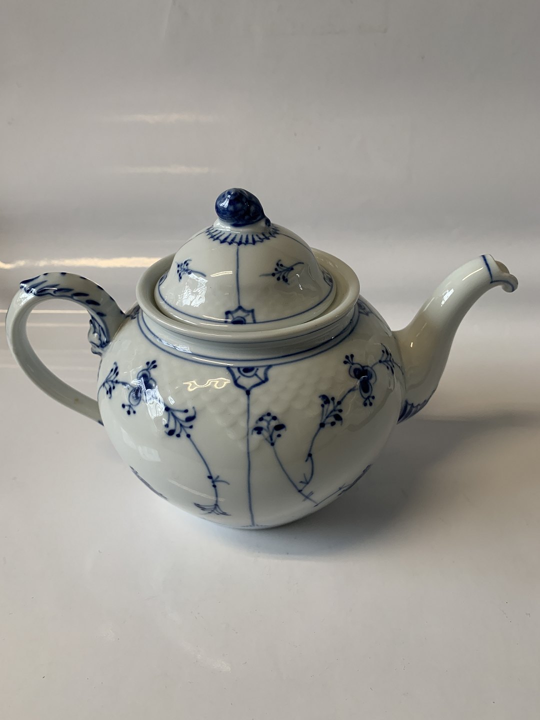 Bing & Grøndahl Blåmalet "Musselmalet", Tekande. Fabriksmærket viser, at denne er produceret i mellem 1962 og 1970. Dekorationsnummer 92. Højde med låg. 16 cm. 2. sortering. Perfekt stand uden fejl.