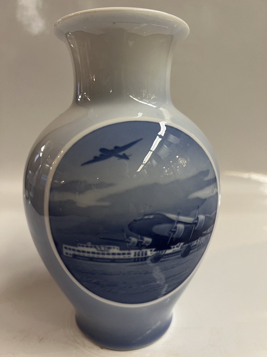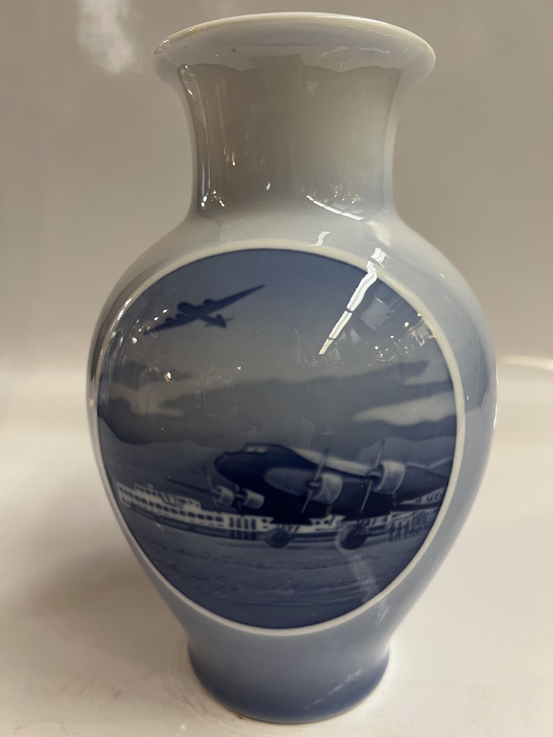 Royal Copenhagen. Vase, from the Rundskuedagen 1939, Motif of Copenhagen Airport Decoration number 3648 1st grade Height 17.5 cm Perfect condition.