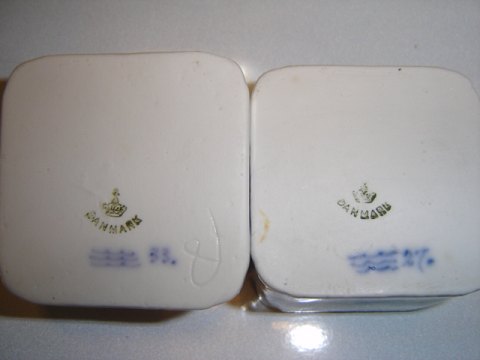 Royal Copenhagen Blue Fluted Plain, Writing set with two house before 1923 Decoration number 1/127 on tray Measures 22 by 15 cm. Lid to the house are with broken fragment and on without lid
