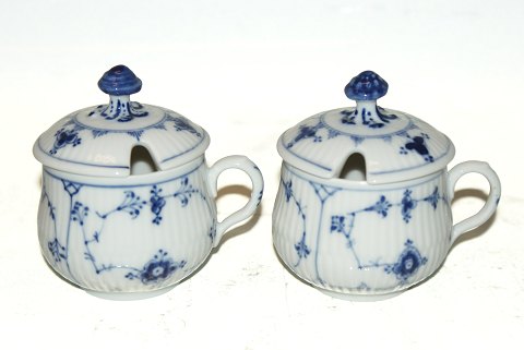 Kongelig Musselmalet Riflet, Sennep´s kande uden låg Produceret før 1923 Dek.nr. 1/137 Højde 7,5 cm. Perfekt stand.