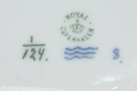 Sjælden Kongelig Musselmalet Riflet, Urte potte skjuler med Vædderhoveder Produceret mellem 1898 og 1923. Dek. nr. 1/124. 1. sortering. Højde 13,5 cm. Åbning 11 x 11,5 cm. Perfekt stand