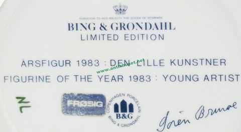 Bing & Grondahl Figure, Figurine of The year 1983: Young artist