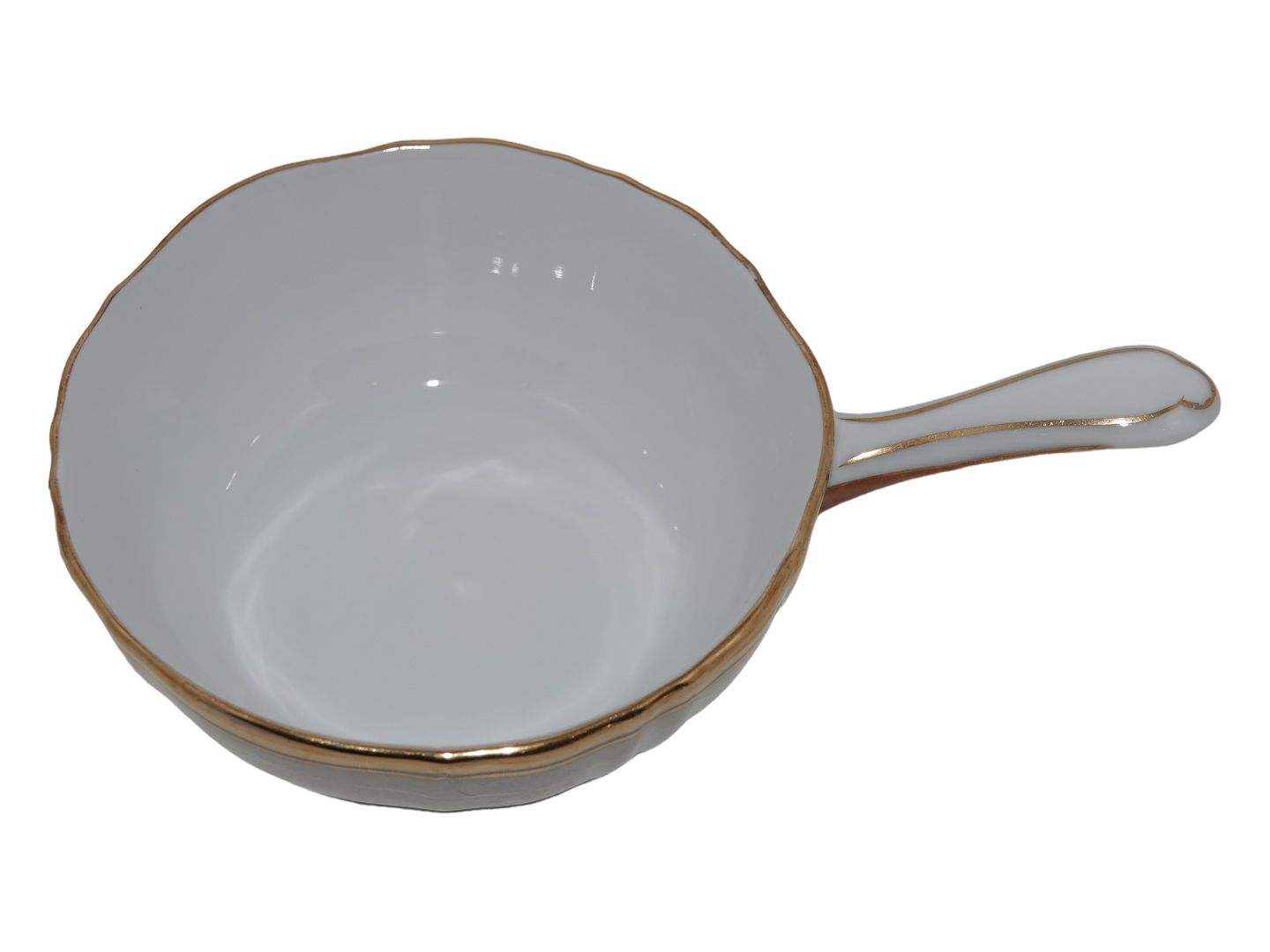 Bing & Grondahl Offenbach, small bowl with handle. Decoration number 54. Factory first. This was produced between 1962 and 1970. Length 14.6 cm., diameter 9.8 cm. Perfect condition with no chips, cracks or repairs.