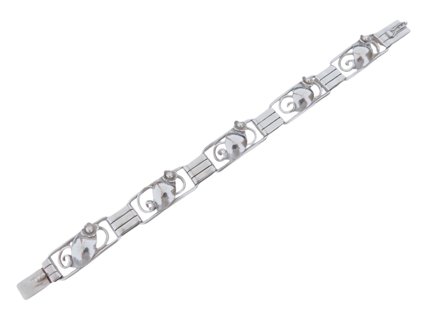 C. Brumberg Hansen was a silversmith in Copenhagen from 1937 until 1976. This bracelet is from around 1950,