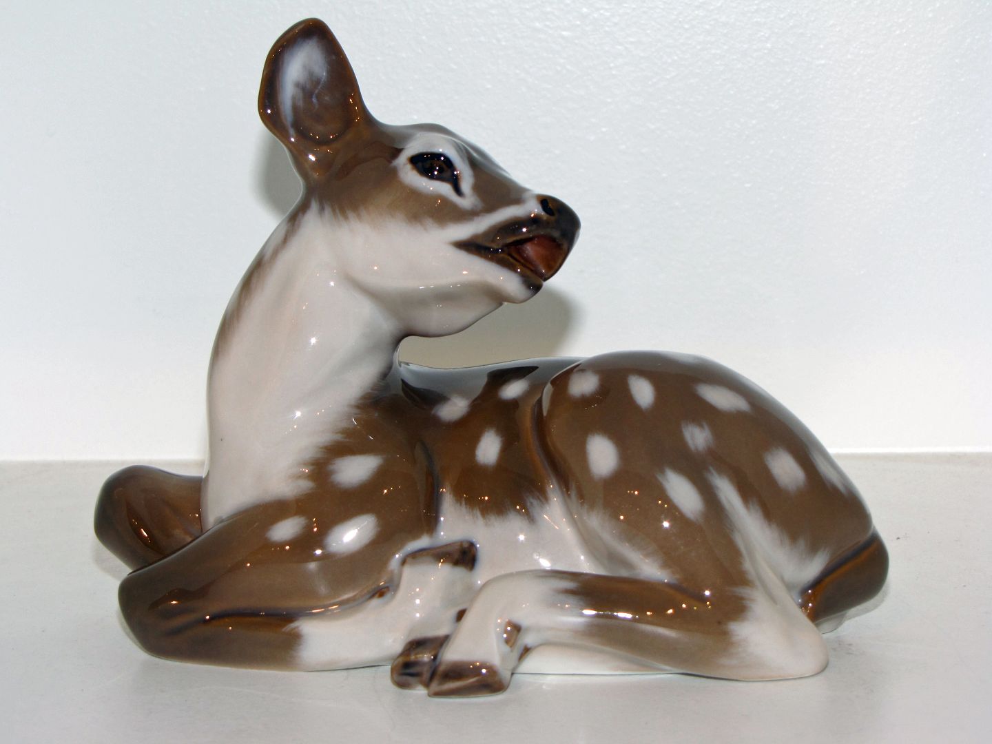 Royal Copenhagen Figur, dådyr. Af fabriksmærket ses det, at denne er produceret i 1965. Dekorationsnummer 2609. 1. sortering. Længde 15,5 cm. Perfekt stand uden fejl.