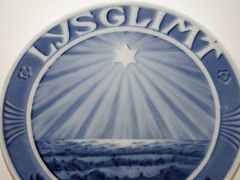 Royal Copenhagen mindeplatte, Lysglimt fra 1922. 1. sortering. Diameter 19,0 cm. Der er en enkelt mørk plet i glasuren ellers perfekt stand uden fejl.