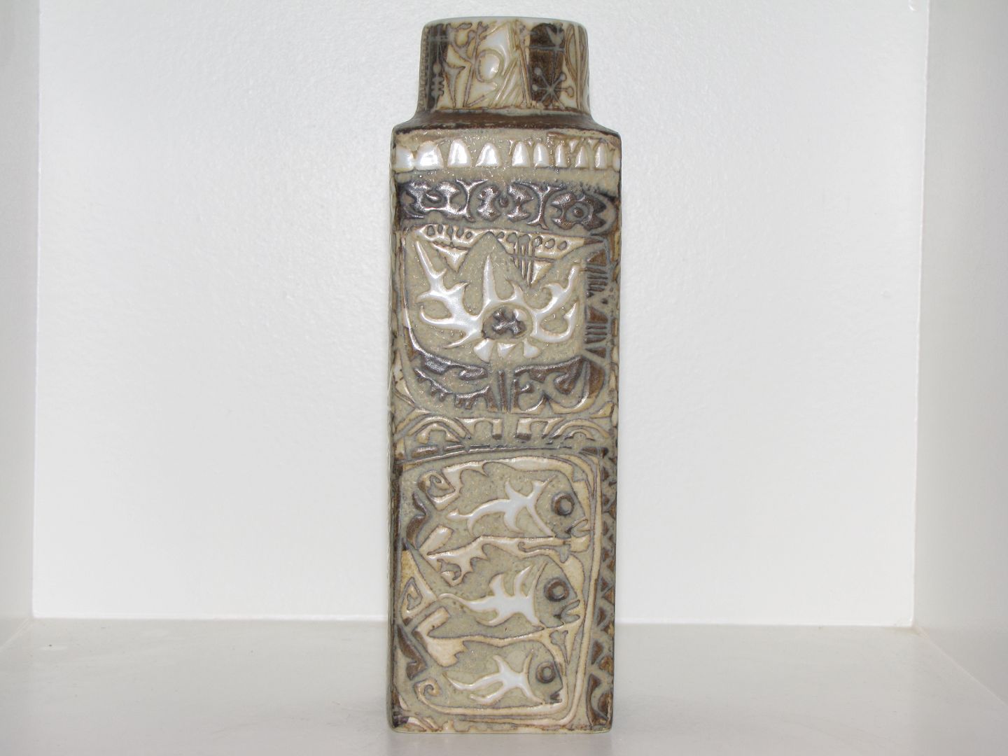 Royal Copenhagen Faience Baca, vase. Designed (and signed) by artist Nils Thorsson. Decoration number 719/3455. Factory second. Height 19.0 cm. Perfect condition with no chips, cracks or repairs.