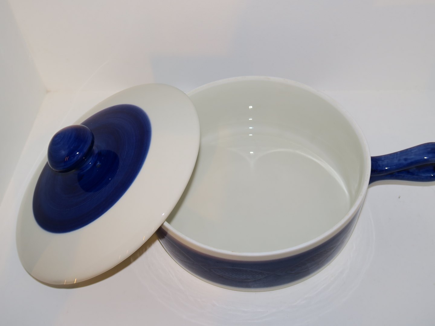 Rörstrand (Rørstrand) Blå Koka, skål med låg og hank , der er ovnfast. Diameter 15,8 cm. Velholdt stand uden fejl.