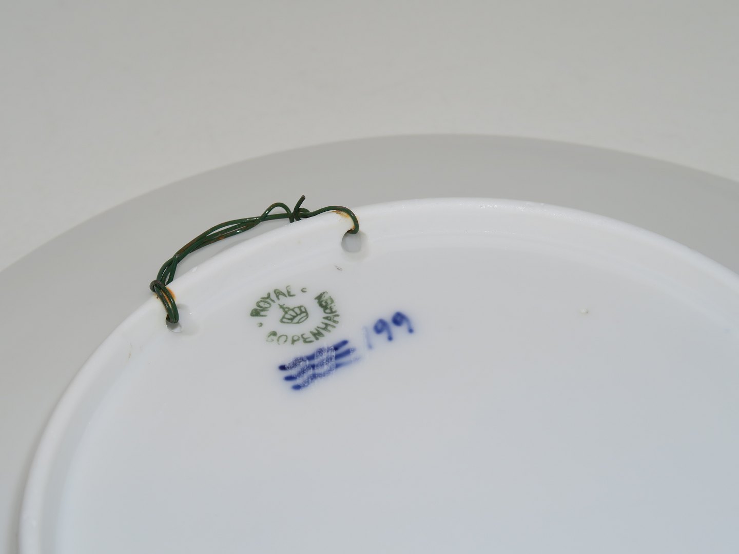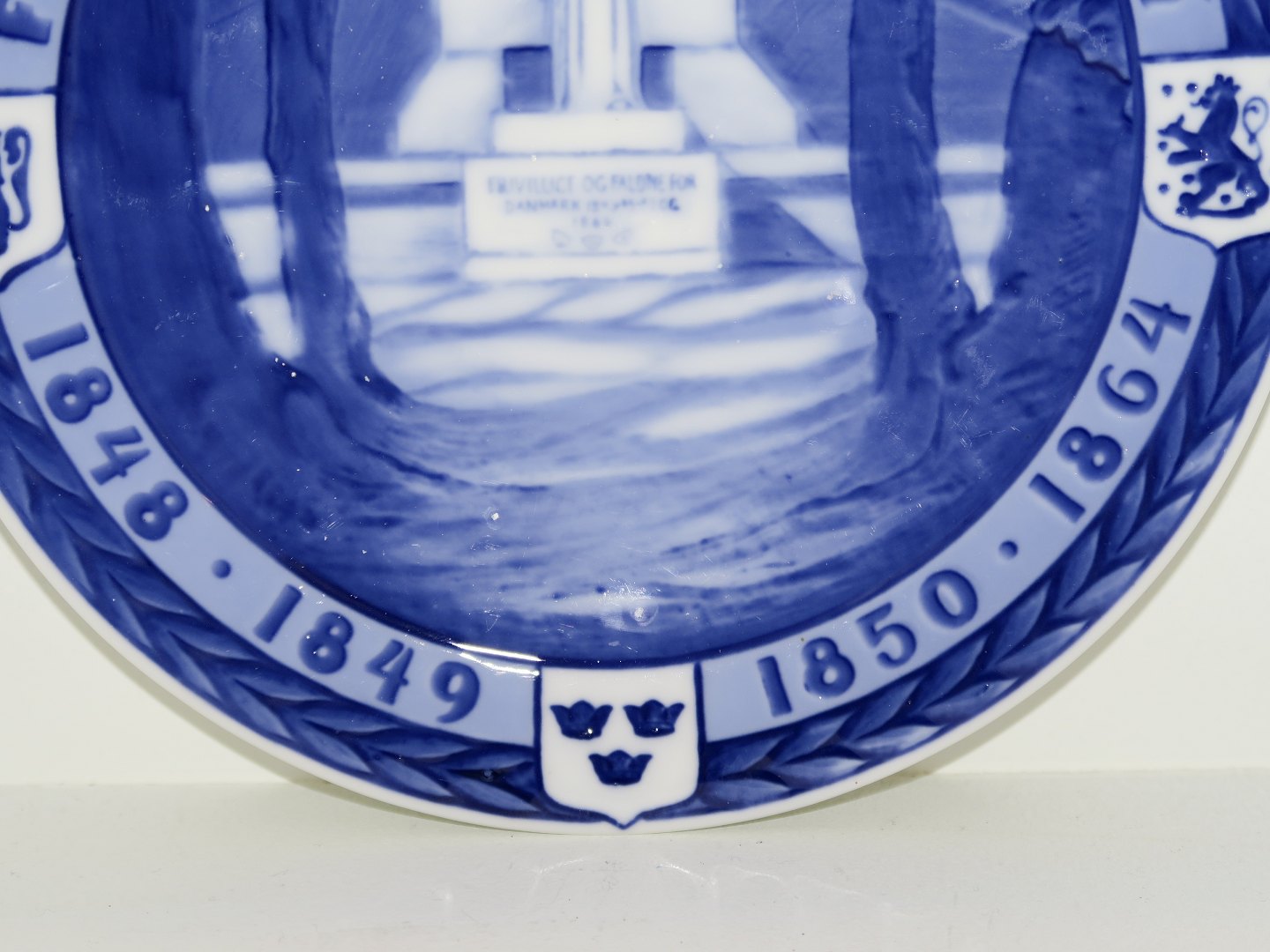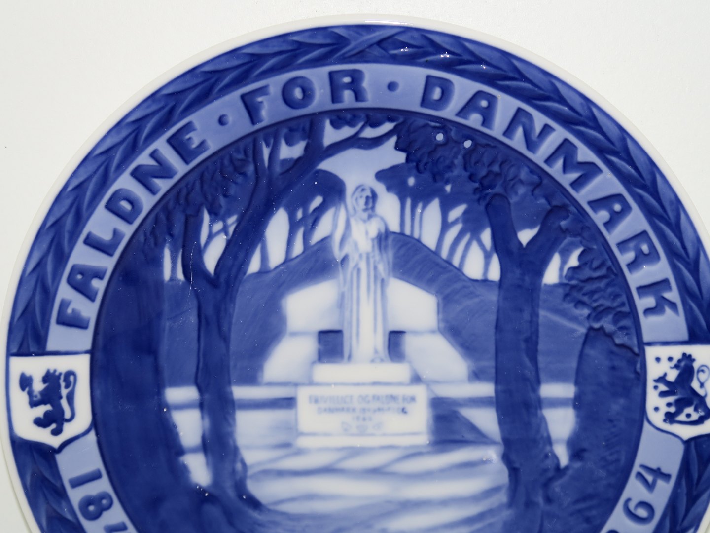 Royal Copenhagen Mindeplatte fra 1920. Mindeplatte for Faldne Frivillige for Danmark 1848 - 1849 - 1850 - 1864. Medarbejdersortering pga. lidt pletter i glasuren. Diameter 19,7 cm. Perfekt stand uden fejl.