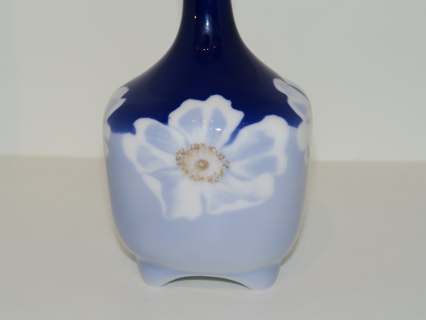 Royal Copenhagen Art Nouveau, kantet vase med mørkeblå top. Af fabriksmærket ses det, at denne er produceret mellem 1898 og 1923. Dekorationsnummer 367/135. 2. sortering. Højde 15,5 cm. Perfekt stand uden fejl.