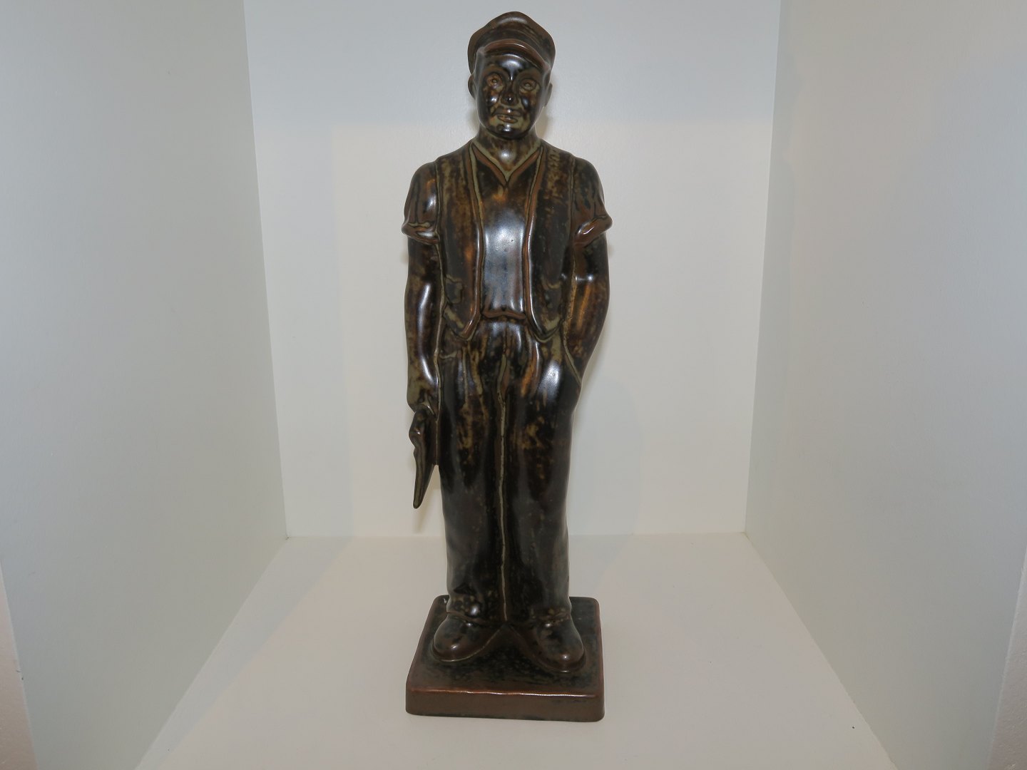 Large unique Bing & Grondahl Figurine, handy man. Signed "Tjerne". Immanuel Tjerne was working at Bing & Grondahl from 1927 to 1940. No decoration number. Height 32.0 cm. Perfect condition with no chips/cracks/repairs.