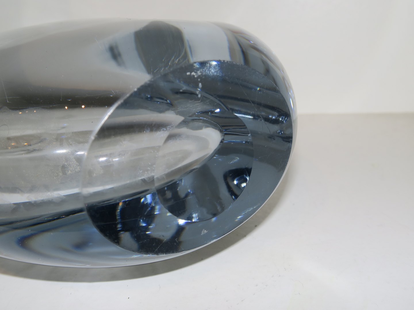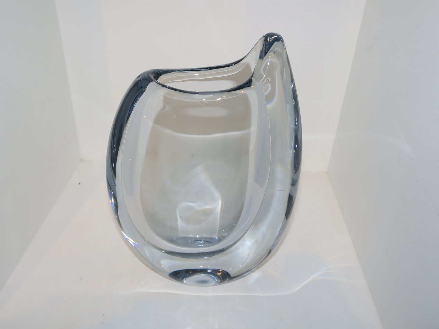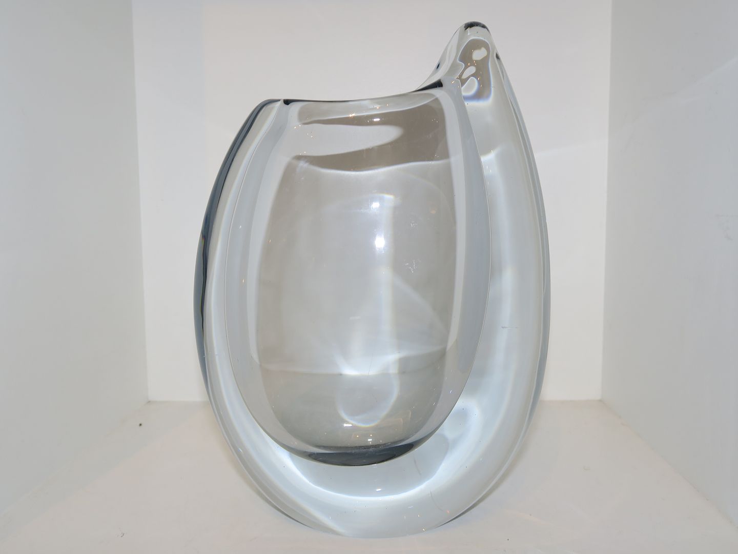 Large most likely Swedish art glass vase from 1950-1960. Unsigned. Height 22.5 cm., width 15.8 cm. Perfect condition.