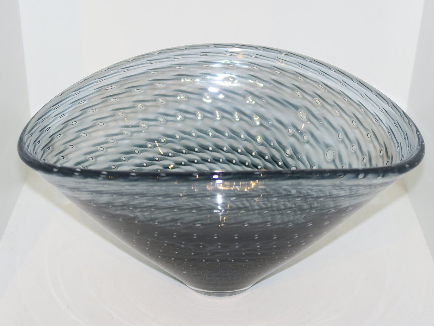 Large grey bowl signed KOSTA and by artist Göran Wärff.