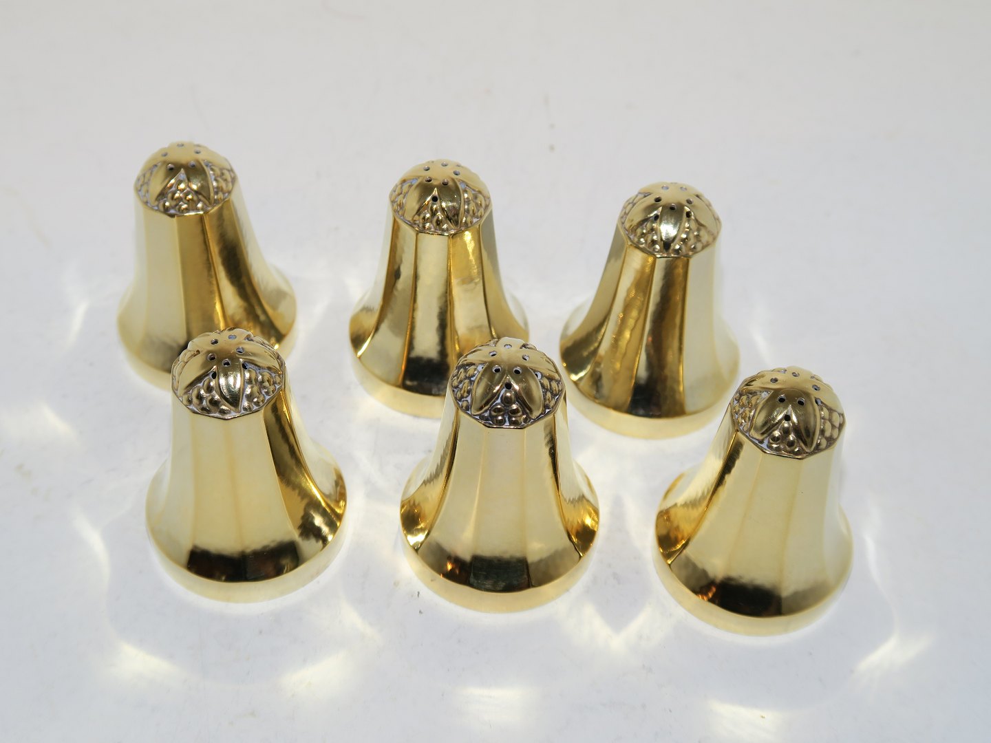 Georg Jensen Konge Sterlingsølv, forgyldt peberbøsse. Dessinnummer 423A. Højde 3,5 cm. Perfekt stand uden indgraveringer.