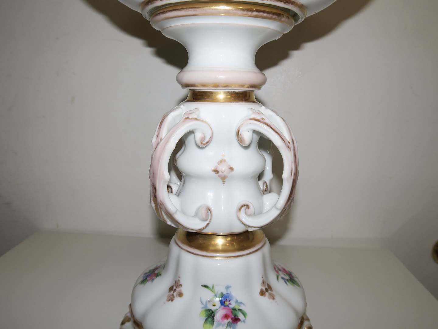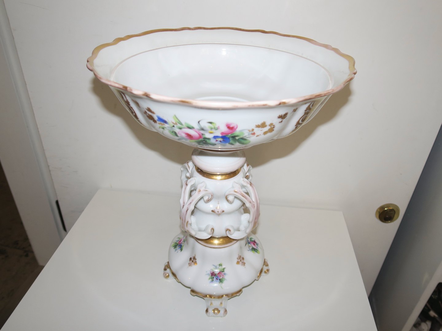 Bing & Grøndahl ekstra stor opsats i hvidt porcelæn dekoreret med blomster.
