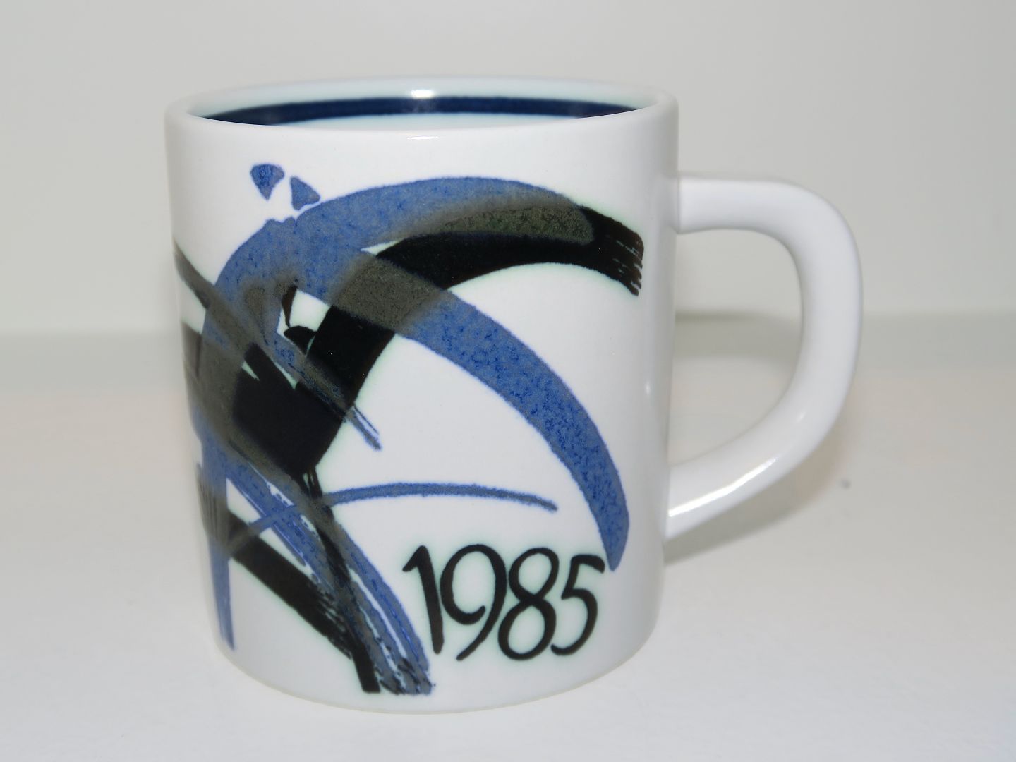 Royal Copenhagen, lille årskrus fra 1985. Designet af Ivan Weiss. 1. sortering. Højde 7,5 cm. Diameter 6,7 cm. Perfekt stand uden fejl.
