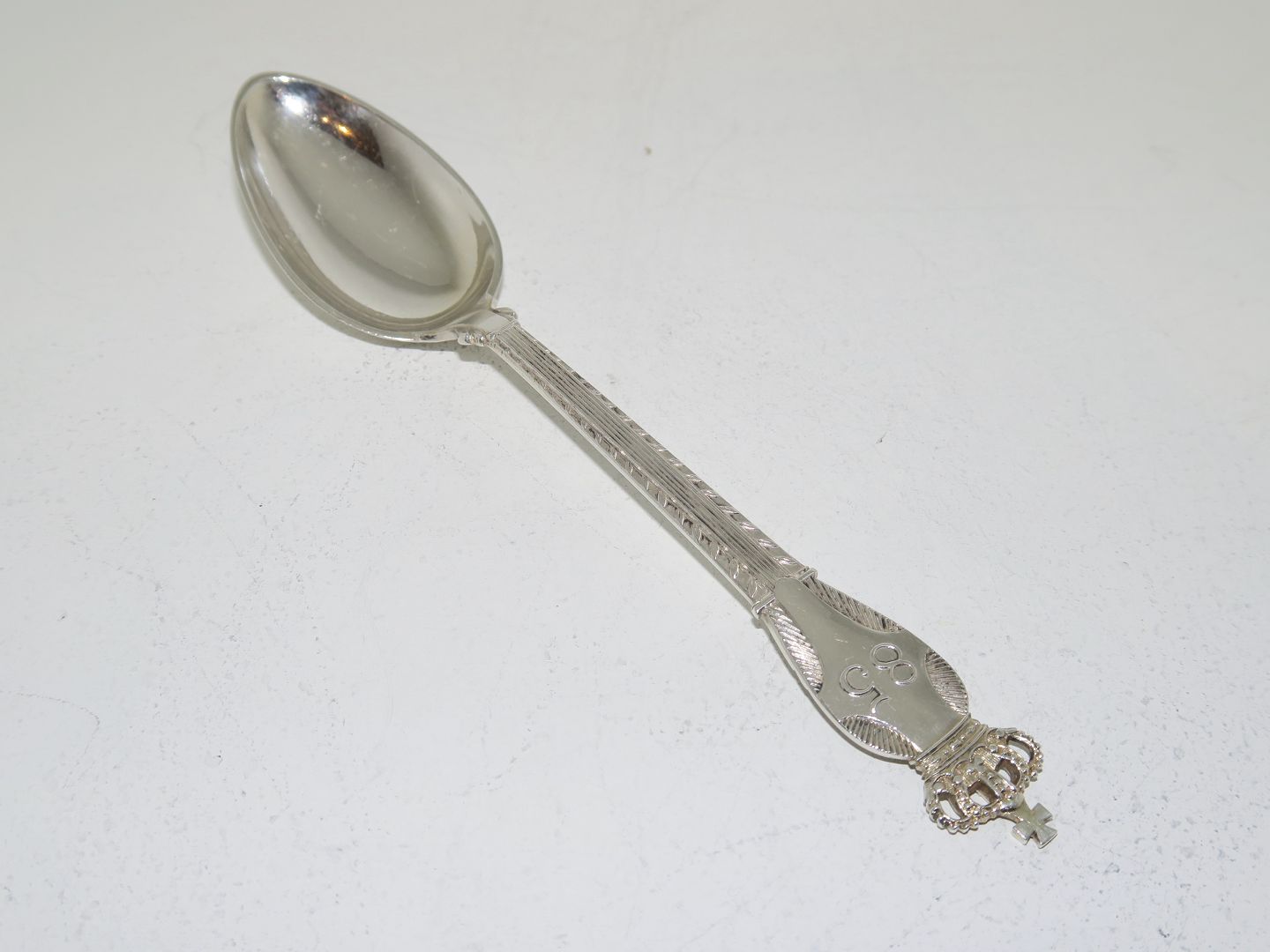 Anton Michelsen sterlingsølv, mindeske fra 1903. I anledning af Kong Christian IX's 85 års fødselsdag den 8. april 1903. Designet af Hans Tegner. Længde 14,8 cm. Pæn stand.