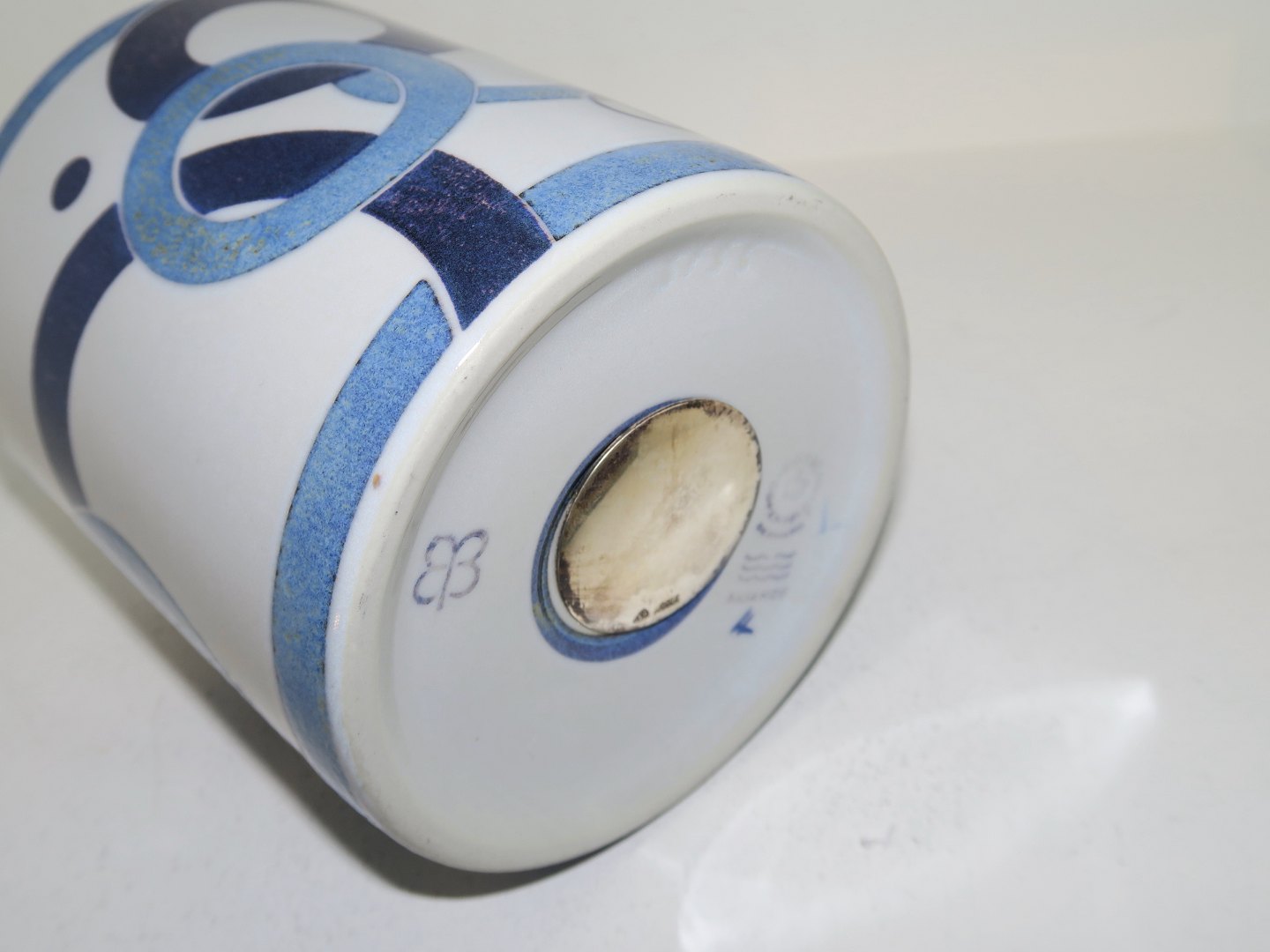 Højde 10,2 cm. Diameter 11,2 cm.