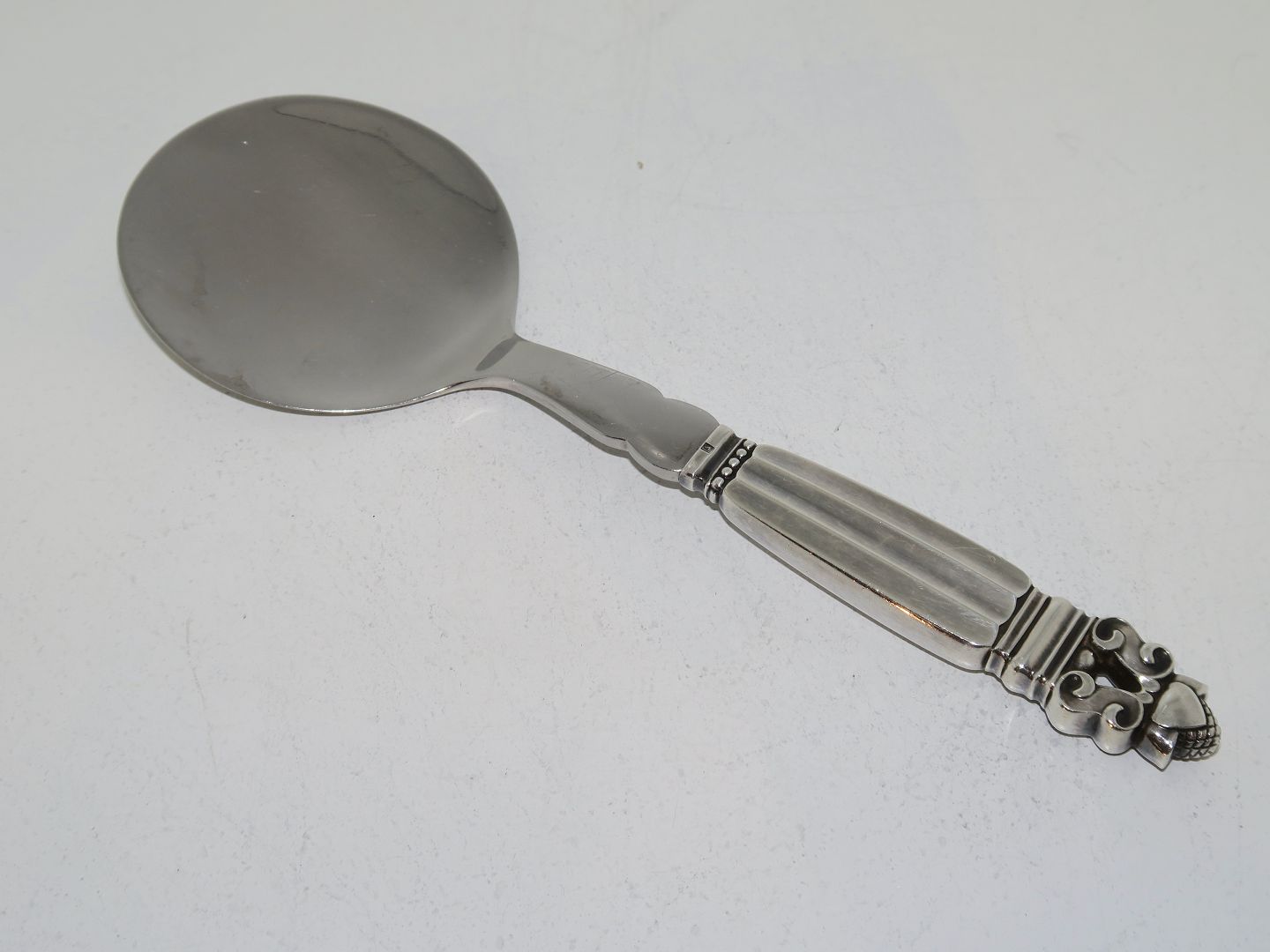 Georg Jensen Konge sterlingsølv og rustfrit stål, tarteletspade. Produceret efter 1945. Længde 20,3 cm. Fin stand uden indgraveringer.