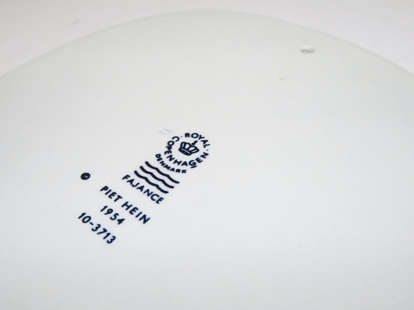 Royal Copenhagen Piet Hein platte med gruk. Den som ved små ting hæfter sig har store ugjort efter sig. Dekorationsnummer 10-3713. 1. sortering. Måler 16,7 x 14,0 cm. Perfekt stand uden fejl.