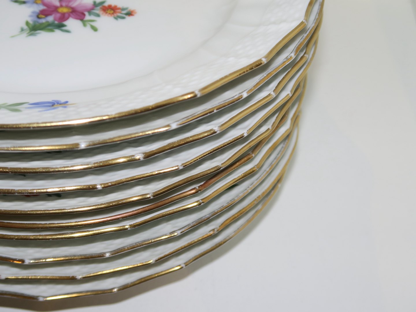 Der er slid på guldkanten på spidserne ellers perfekt stand uden fejl.