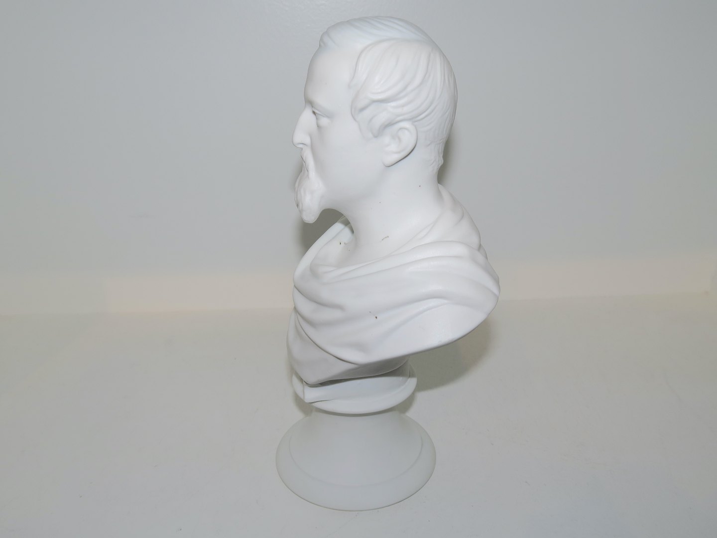 Bing & Grøndahl buste af Kong Frederik VII i hvidt bisquitporcelæn.