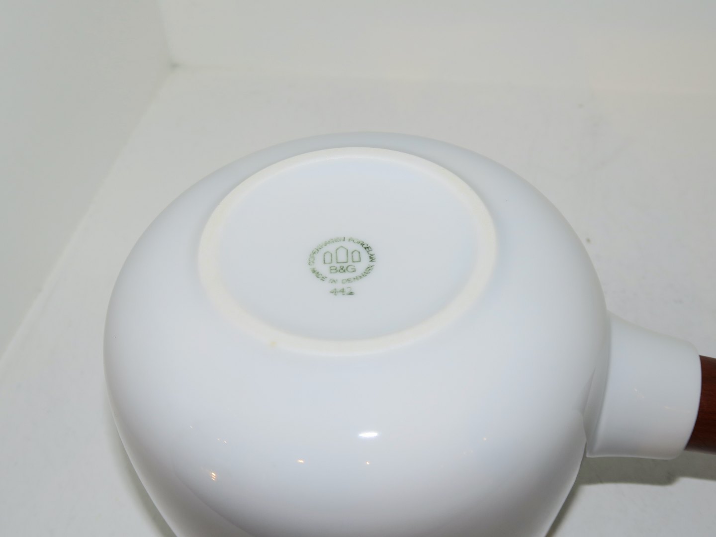 Bing & Grøndahl Hvid Koppel, sjælden sovseskål med træhank.